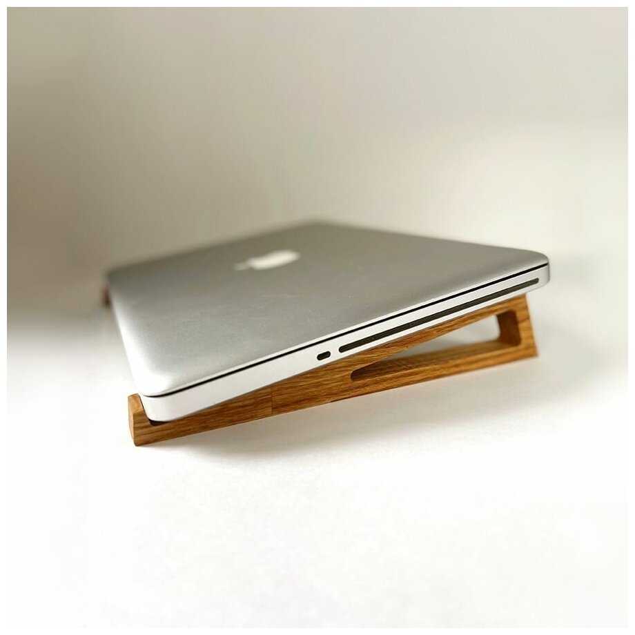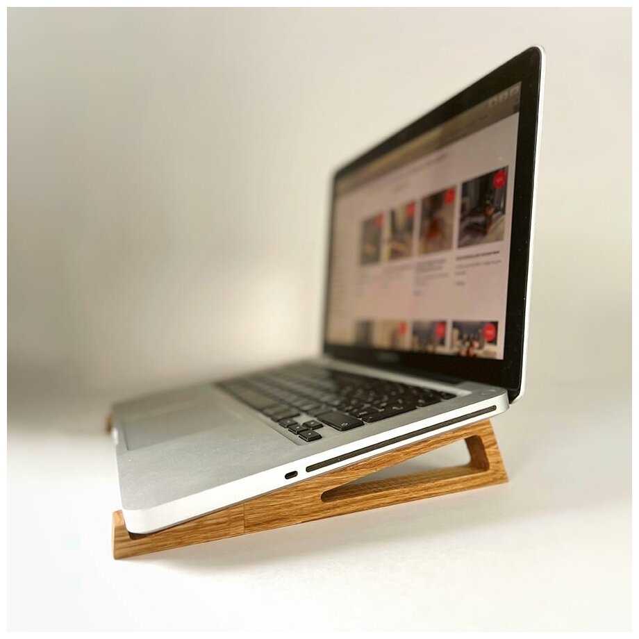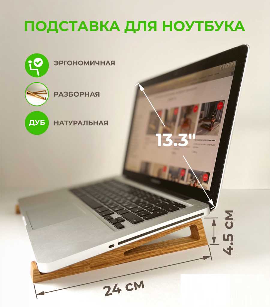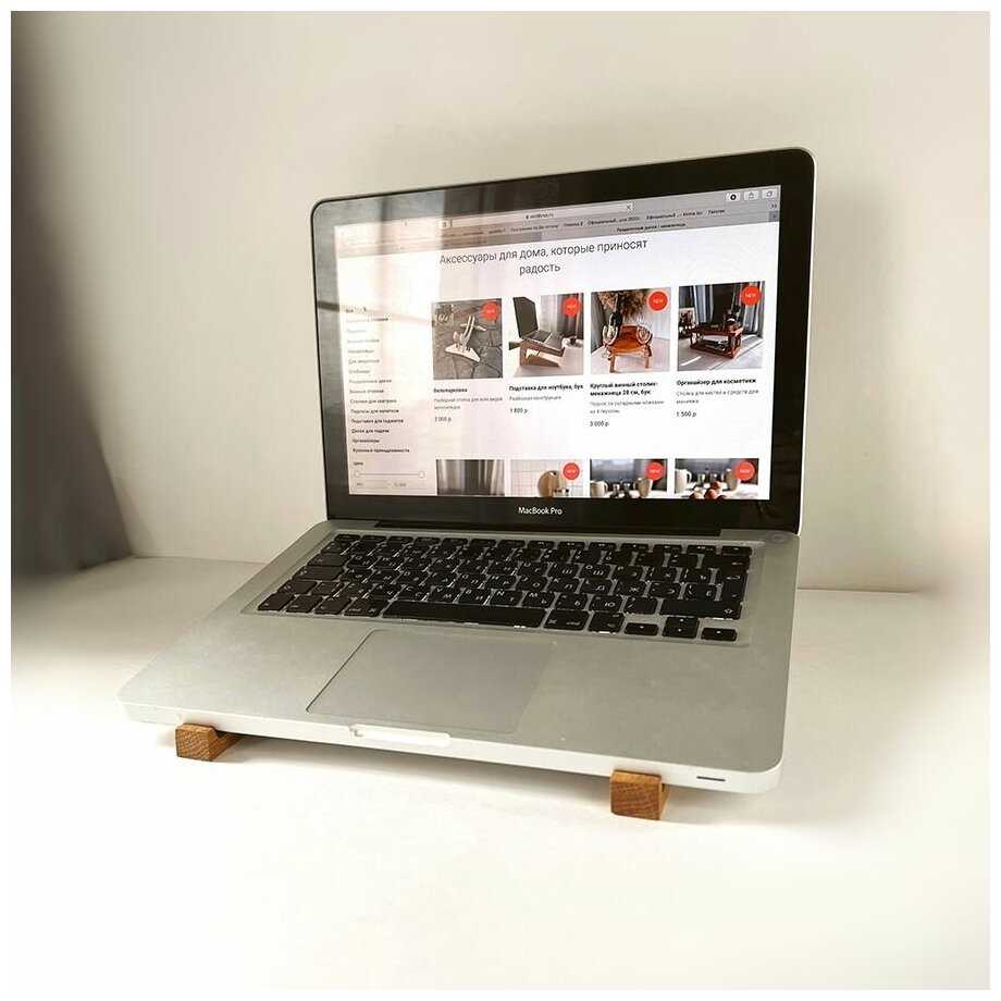 - - Нужно приноровиться, чтобы разместить МакБук 13" на этих подставках, так как нужно четко попасть резиновыми ножками компьютера на деревянные площадки подставок.