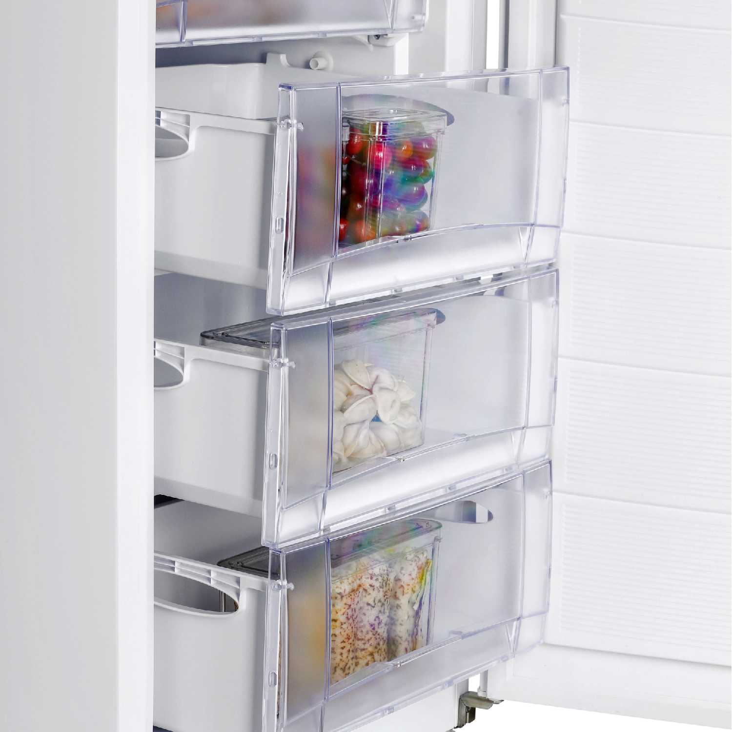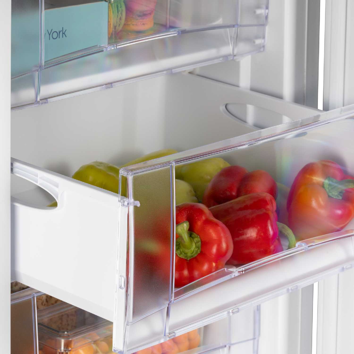 Ящики прозрачные, вместительные и удобные для сортировки продуктов. Пользователи раскладывают овощи, грибы, ягоды и рыбу по отдельным секциям. Откидная полка добавляет гибкости. Все на отдельных полках, что упрощает доступ. Подходит для организованного хранения. -