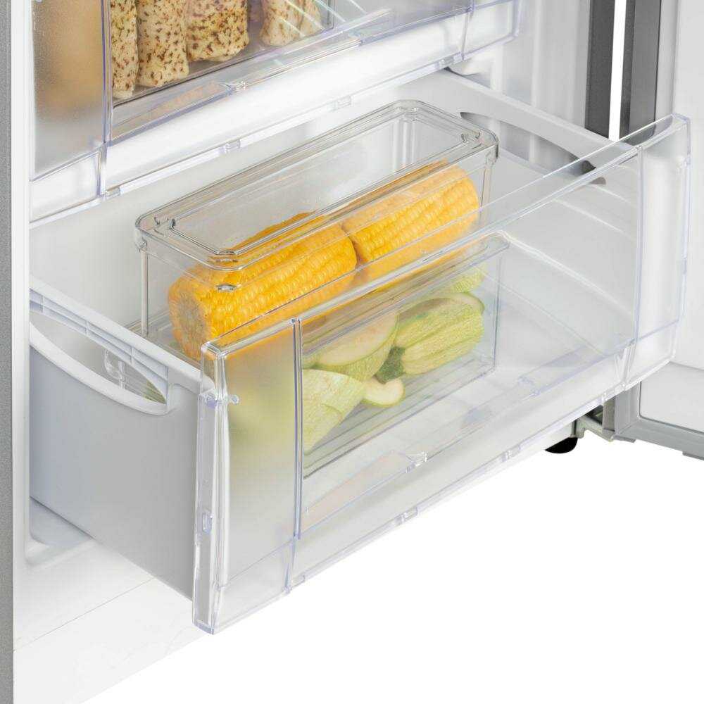 Многие отмечают, что морозилка тише стоящего рядом холодильника. Шум компрессора минимален в рабочем режиме. По сравнению с предыдущими моделями разница ощутима. Это делает ее удобной для кухни.