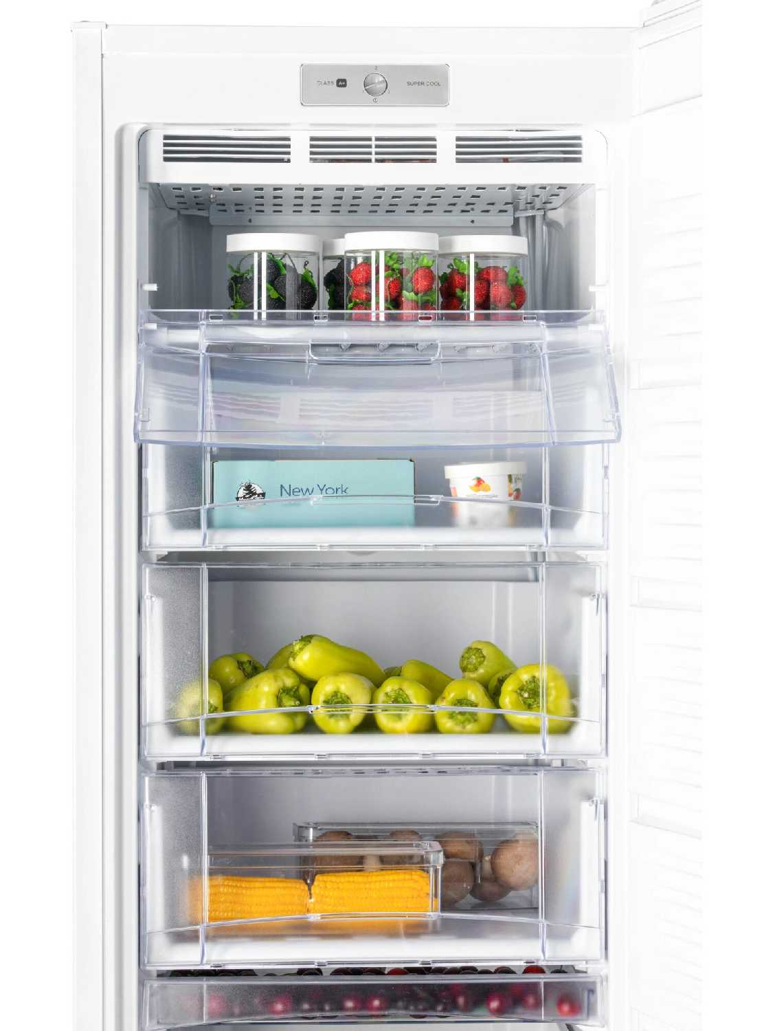 Многообразие ящиков, сверху обычные, снизу полноразмерные ящики. Скорость заморозки.
