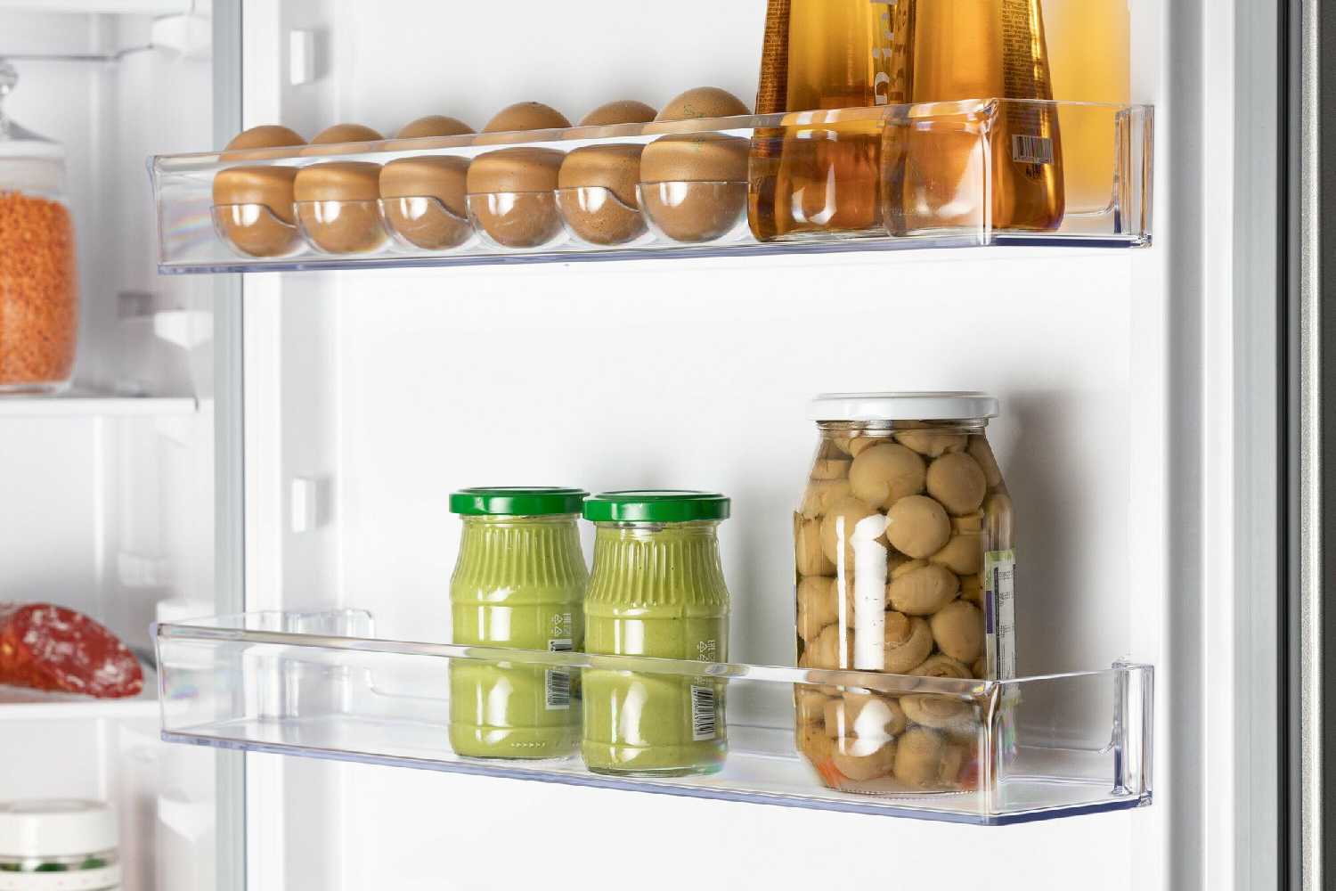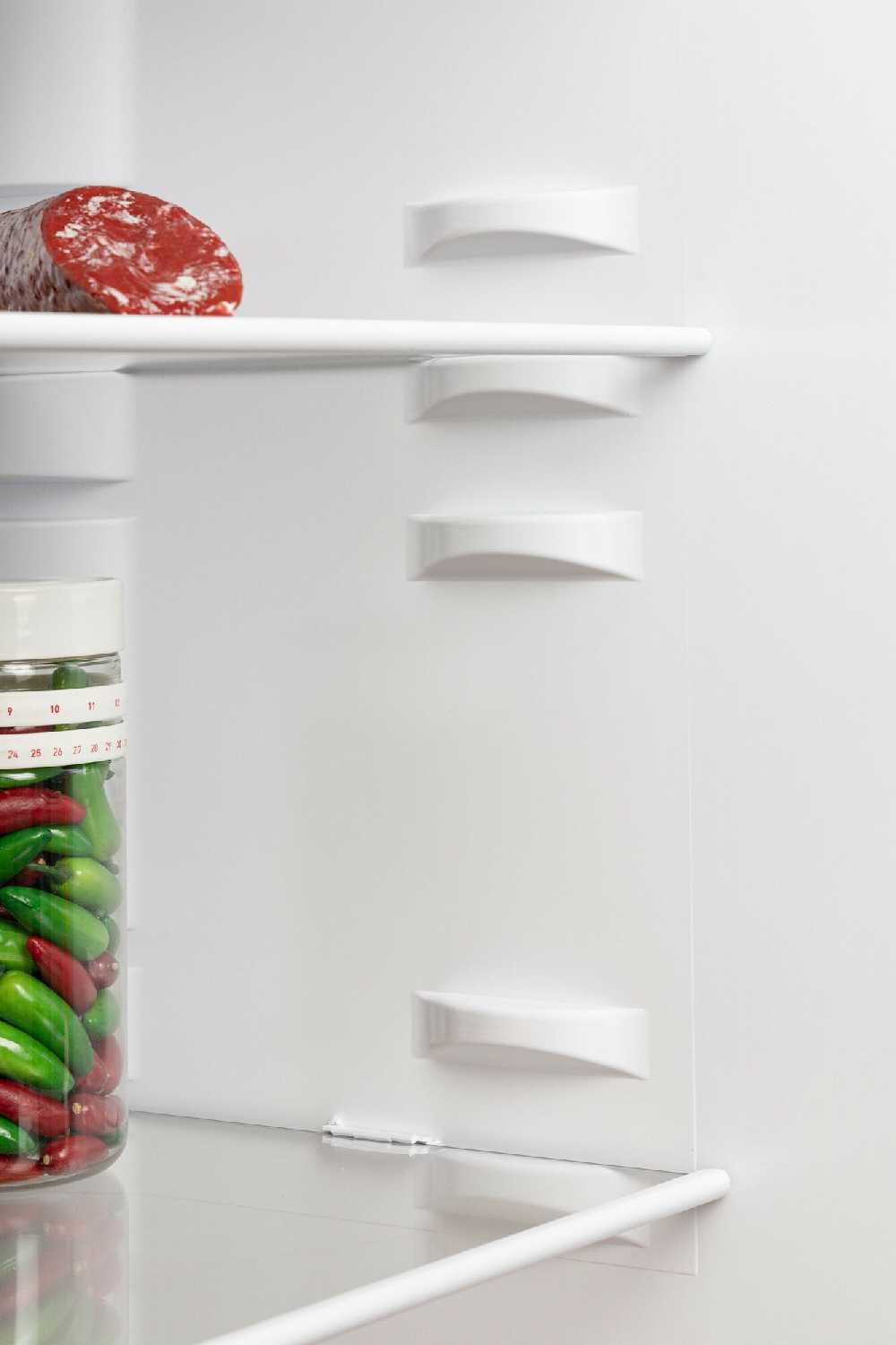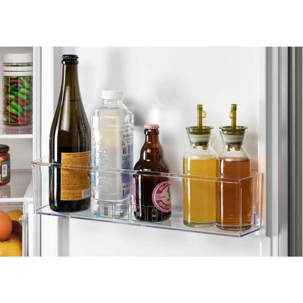 - Продуманное расположение полок в холодильной камере позволяет хранить высокие емкости.
