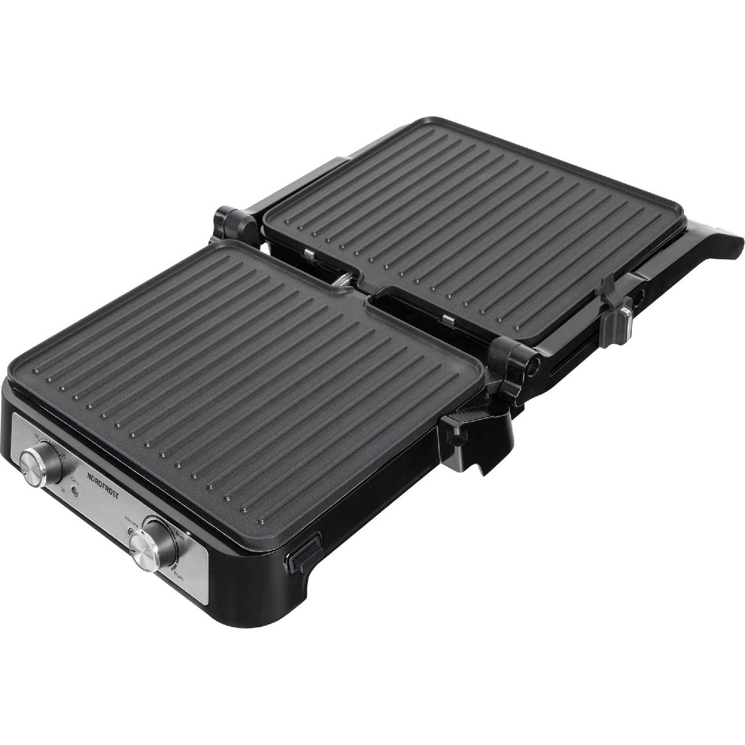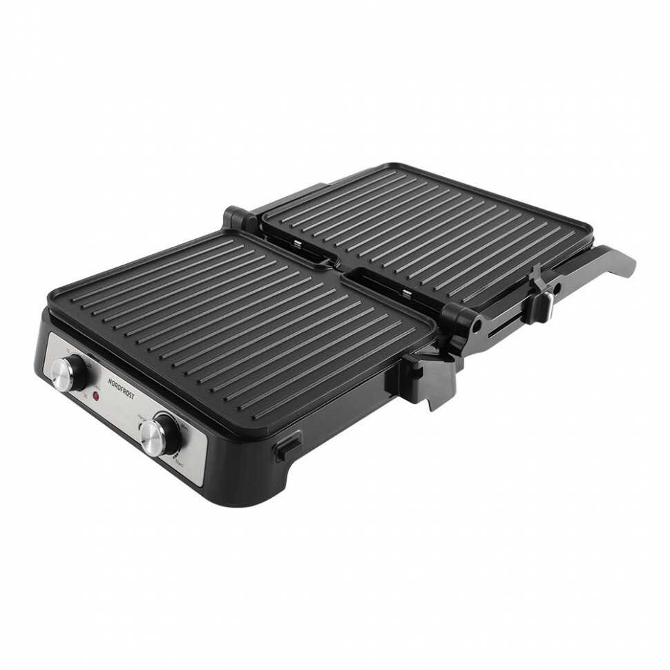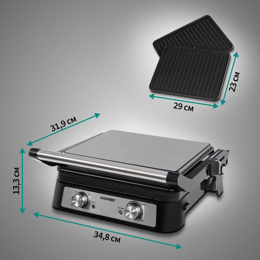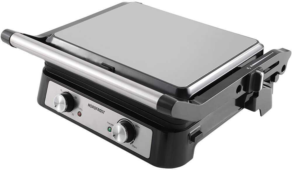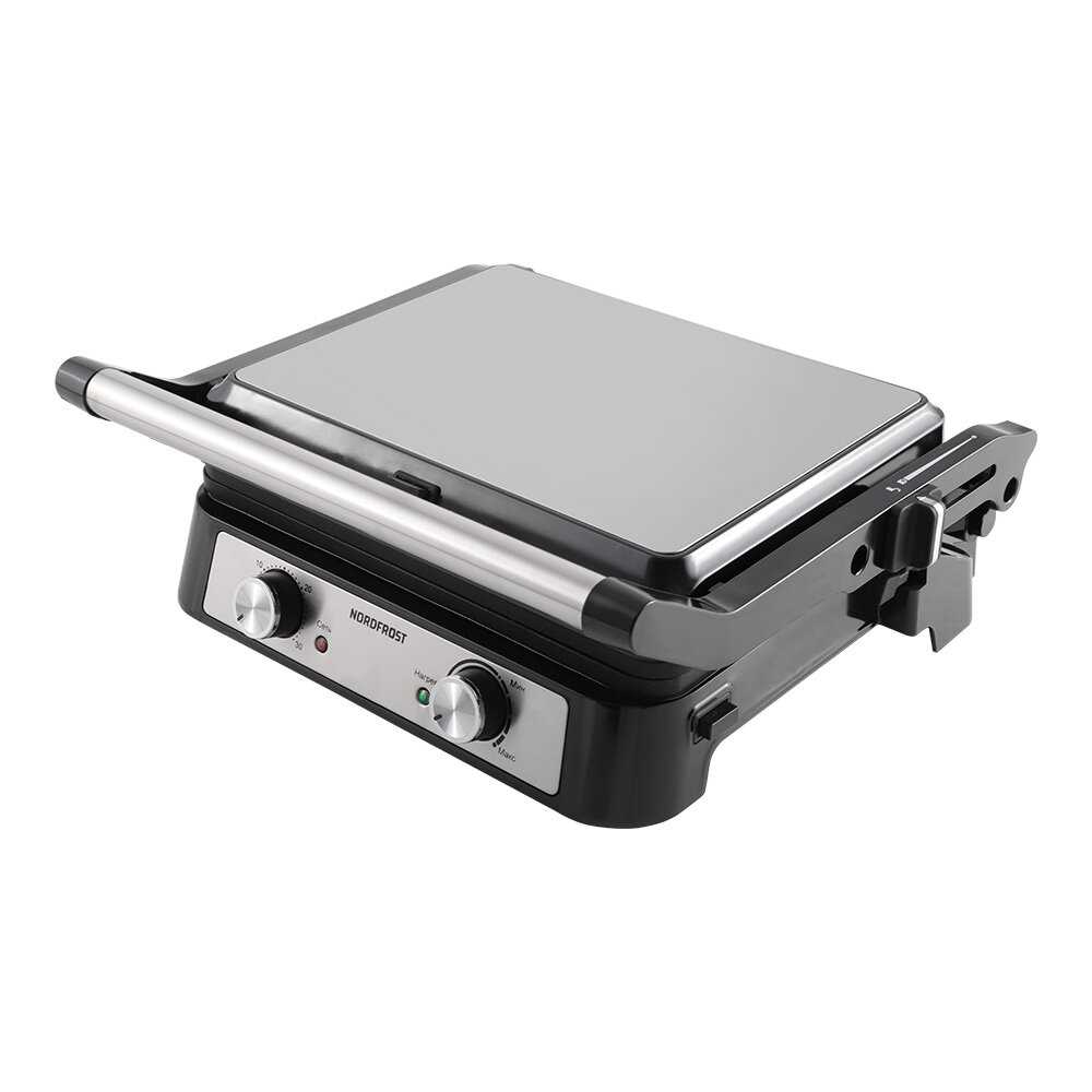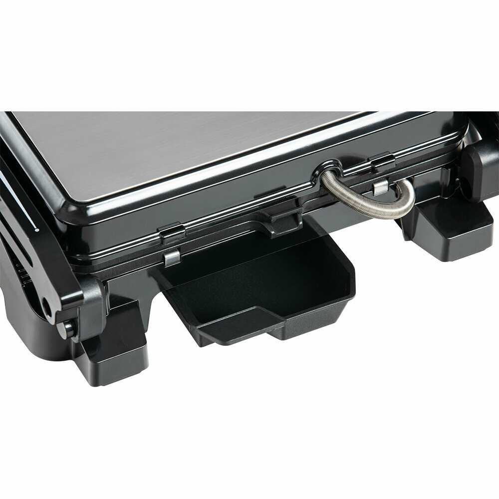 - + Красивый дизайн. Компактная. Быстро нагревается . Верхняя панель открывается на 180 градусов. Отдельно контейнер для сбора жира. Таймер отключения.