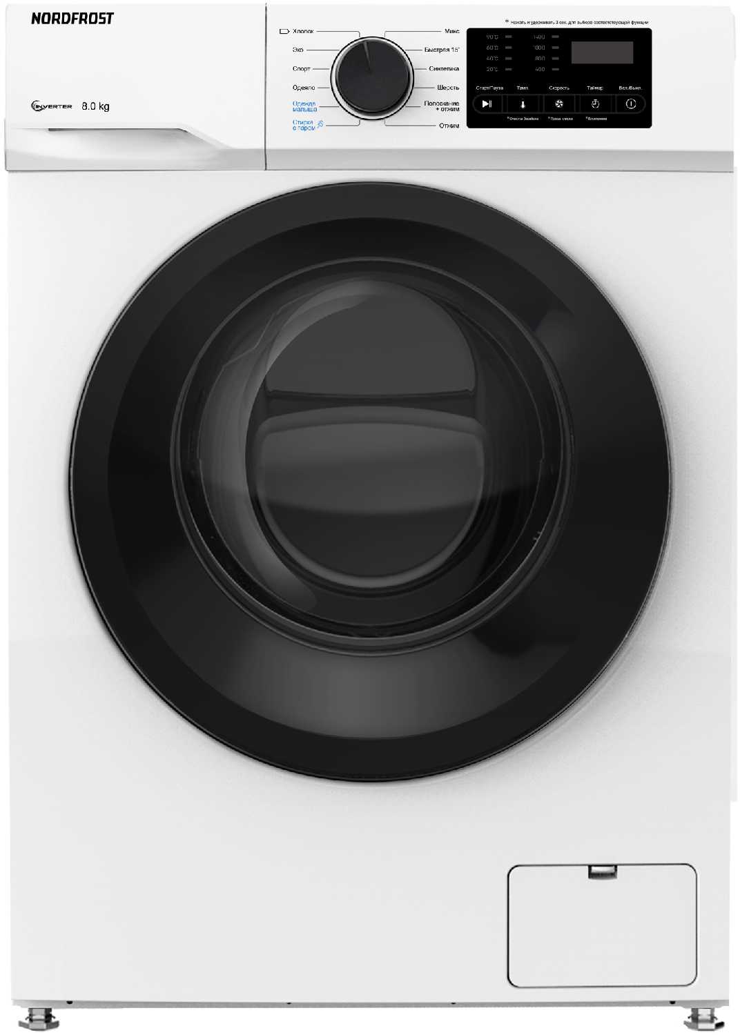 Отзывы о Стиральная машина NORDFROST i-WSQ4 8140 W, 8 кг загрузка, 1400 об/мин, инверторный мотор
