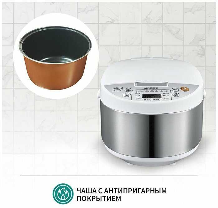 Особенности : | антипригарное покрытие чаши, дисплей, регулировка времени приготовления, регулировка температуры, часы |