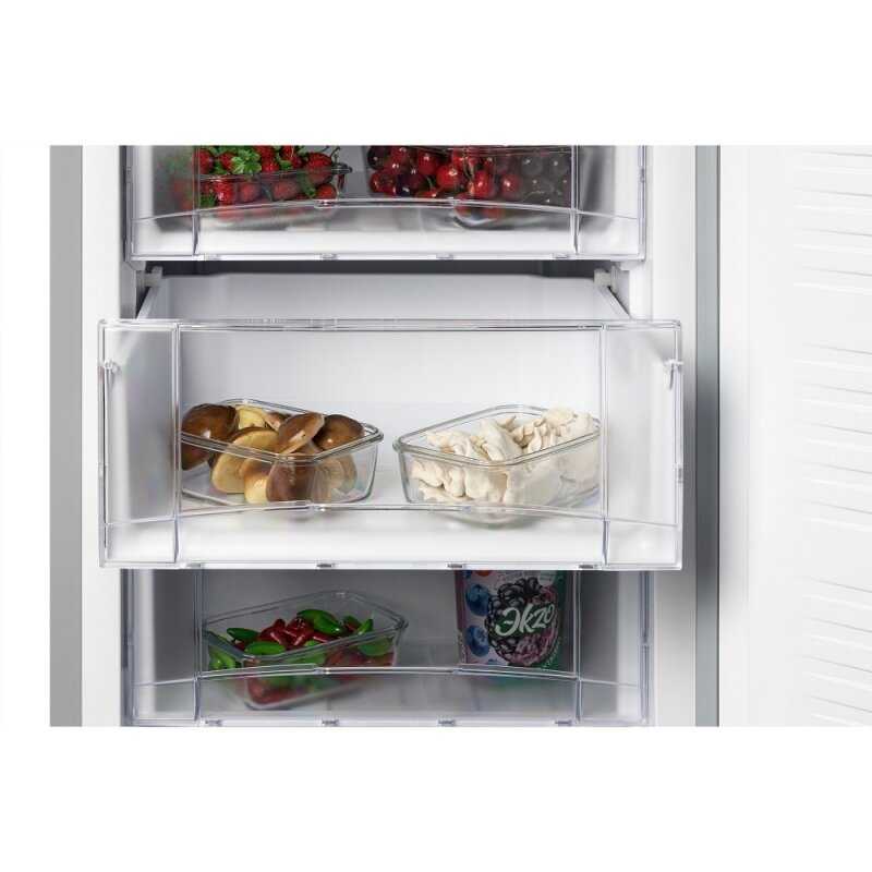 Выглядит очень достойно, высота под 2 метра, по цене у конкурентов не было шансов. Внутри все как в советских моделях: поэтажный холод в морозилке, простенькое убрантсво в холодильном отделении. Полки из закаленного стекла.