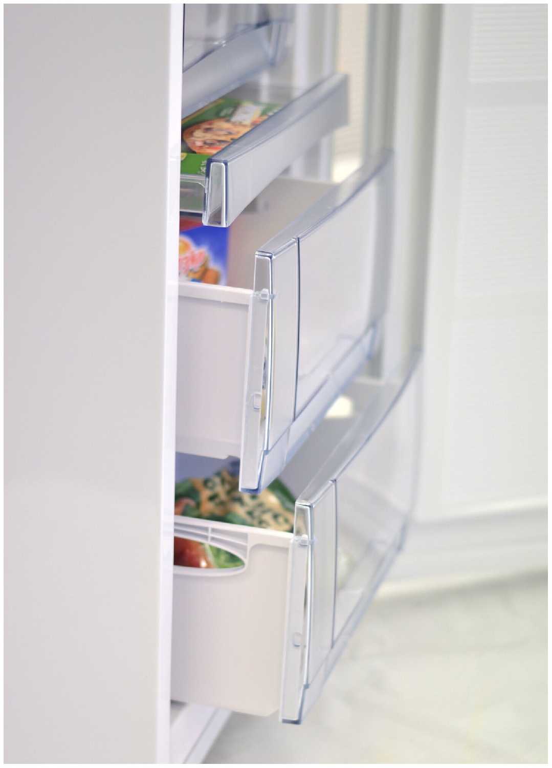 - Прочные ящики в морозилке выдвигаются гладко, с прозрачными дверцами для легкого доступа.