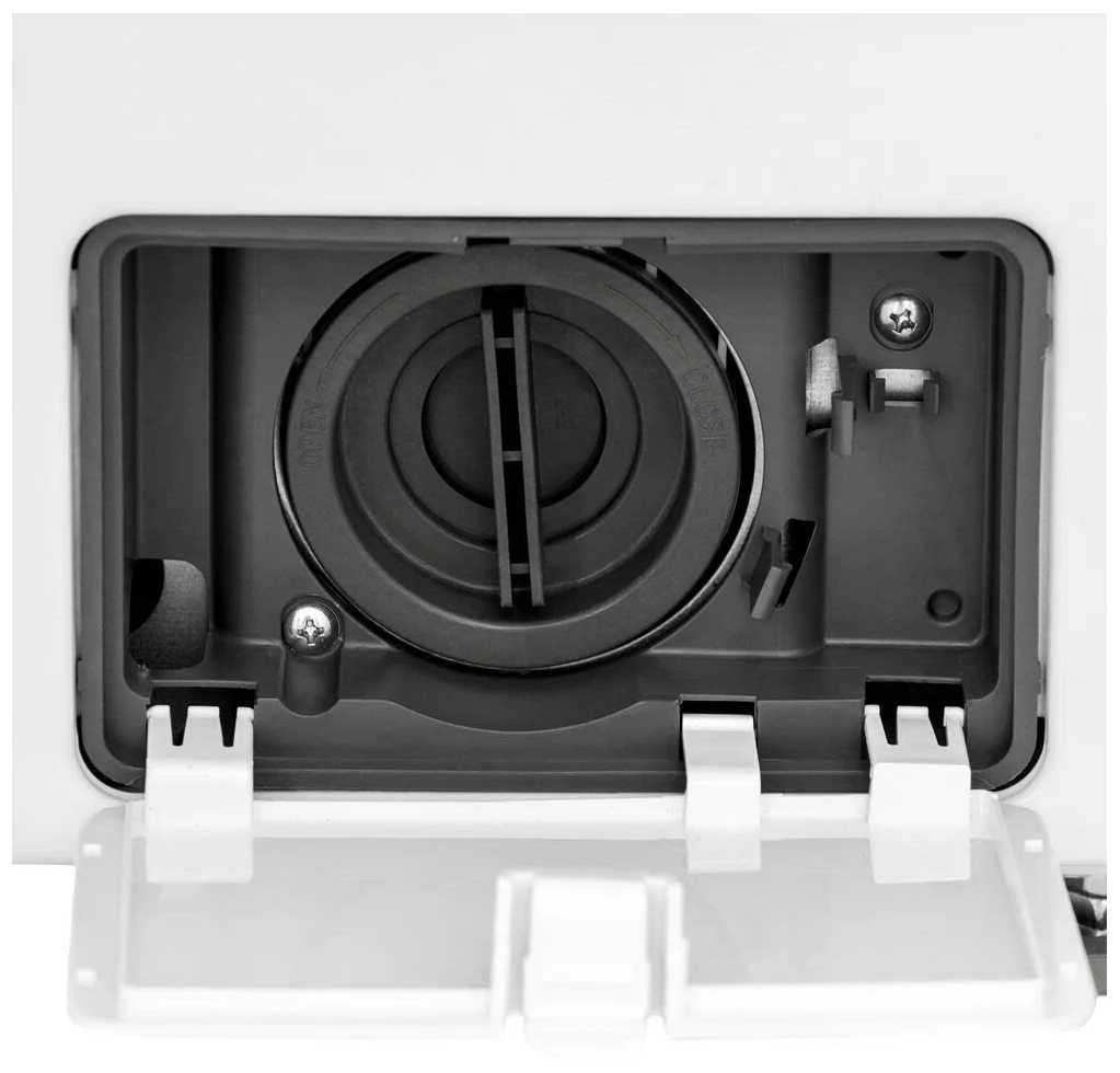 Эргономика требует улучшений: застревание мелких вещей под резинкой люка, неудобный доступ к фильтру и острые края корпуса осложняют взаимодействие. Панель управления, хотя и простая, страдает от неочевидной индикации — это минус для тех, кто привык к подробной визуализации процессов.