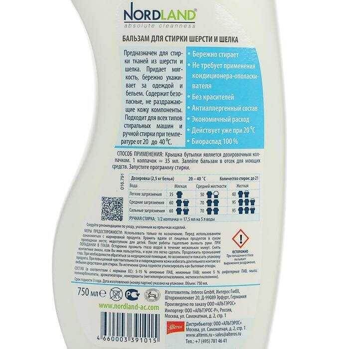 Характеристи Nordland для шерсти и шёлка