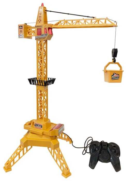 Из плюсов пришло именно то, что указано на картинке, почти точь в точь. Цвет жёлтый, перкладины и пульт коричневые. Легко собирается ребенком, а главное, управляется пультом, поднимает опускает ёмкость, которая также имеется в наборе. Пульт не дистанционный, а на проводе, перебоев в управлении не бывает, если не сели батарейки, конечно. Пульт сзади оснащён крышкой для батареек на винте, что очень хорошо и дети не могут залезть туда без инструмента и трогать батарейки. Из минусов: нельзя положить груз в ёмкость, если кусочки бумаги кран ещё выдержит и поднимет, то с картоном нет, поднять не сможет, не говоря уже о других игрушках. На пульте управления со временем стал заедать рычаг спуска подъёма, нужно ловить его положение, чтоб кран стал что то поднимать. По высоте указано что он 71 см, а на деле немного меньше, у меня 65 см.