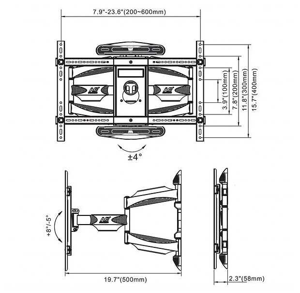 Хороший кронштейн за свою цену. Выдерживает большой телевизор. Можно наклонять под разным углом, а также поворачивать тв вправо-влево, выдвигать вперёд подальше от стены, это удобно. Крепёж докупал отдельно , подходящий именно под материалы моих стен.