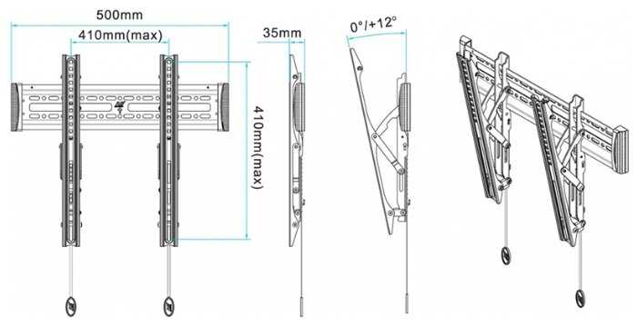 - Подходит для VESA-стандартов 100x100 до 400x400, охватывая большинство современных ТВ.
