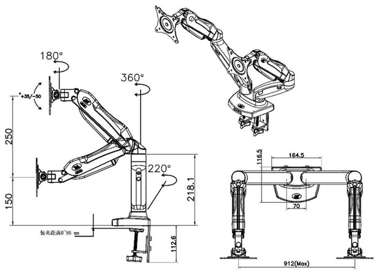 - + Быстрая сборка и установка. Подвижность и углы наклона