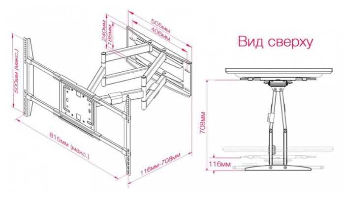 | Регулировка : | наклон, наклон и поворот, отступ от стены, поворот |