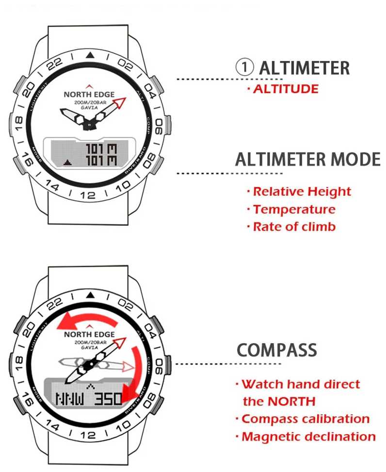 Очередная дорогая китайская игрушка с кучей функций, но бесполезных, так как они неправильно показывают параметры! При каждом пользовании компаса его надо колибровать,смысл тогда от него, если вы к примеру находясь в лесу при его включении должны колибровать, а как вы отколибруете и будете уверенны в точности, если не сравните показание с обычным магнитным компасом, а если у вас есть такой компас, то тогда какой толк в часах! Высотомер вообще показывает не корректно высоту, при проверке находясь на высоте 154 метра над уровнем моря, часы показывают то 280,то 365 метров! Барометр также работает не корректно, при сравнении с механическим барометром, показания часов разнятся на большие величины, если на барометре 1080hpa, то часы показывают 935hpa! При резком толчке рукой, к примеру рубке дров, стрелки часов начинают жить своей жизнью и их надо корректировать! Проще сказать,дорогая игрушка, бесполезная игрушка!