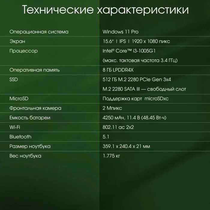 Характеристики:- процессор: AMD Ryzen 5 7535U