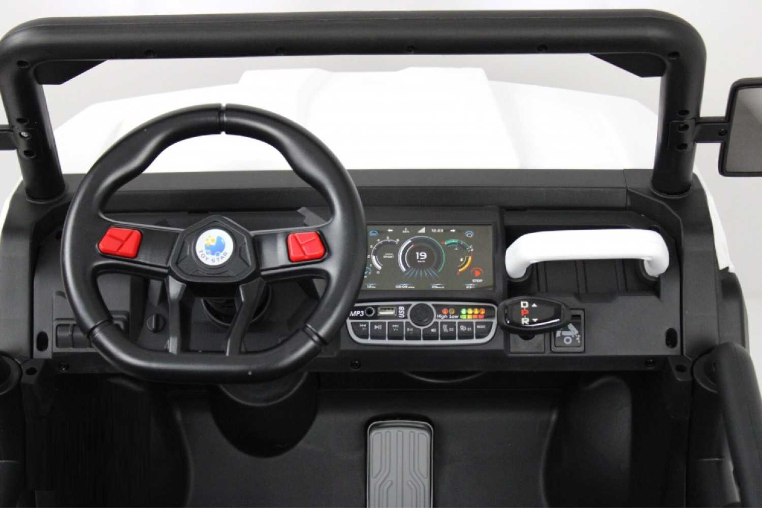 | Особенности : | двухместный, задний ход, индикатор заряда, мягкие накидки на сиденье, на аккумуляторе, открываются дверцы, переключение скоростей, плавный ход, радиоуправление, требуется частичная сборка |