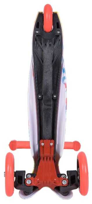 - + купили на ЯМ за 980 р. цена отличная. и за свою цену все хорошо, дороже бы вряд ли взяла. по моему хлипенький (ну сравнительно). мы взяли его в качестве второго самоката, дополнительного, для поездок к бабушке. приехал уже с царапиной, но за такие деньги отказываться не стала. колеса светятся, но очень бледно, видно только в полной темноте. ребенку 4,5, рост 113, ручку поставили в самое верхнее положение.