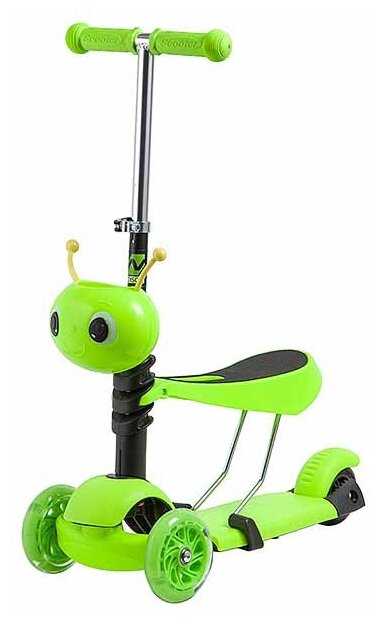 Моему сыну было 2,5 года, когда мы купили самокат. Это единственный вид транспорта, на котором он согласен был гулять. Самокат удобен тем, что у него есть сиденье. Это позволяет ребенку отталкиваться от земли обеими ногами и сесть передохнуть, когда устал. Выглядит он неплохо. Детский ненавязчивый дизайн. Спереди кармашек, где можно перевозить перекус или игрушки. Колеса при движении светятся разными огнями. Ручки прорезинены и держаться за них действительно удобно. Бывает, что мне приходится буквально тащить ребенка на самокате. И я в такие моменты радуюсь, что он не тяжелый. Сиденье, кстати, можно отстегнуть и поднять в верх. Тогда это будет полноценный самокат.