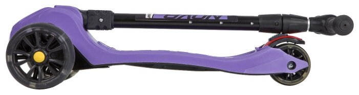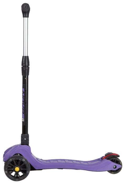 Самокат красивого фиолетового цвета, ребенок обожает фиолетовый и самокат пришлось искать именно такой. Сыну очень понравился, научился ездить на нем быстро - колеса устойчивые, не падает, управлять рулем легко. Тормозит правда ногой но думаю и тормоз освоит попозже. Гоняет быстро, но самокат стоически переживает. Откатал с апреля и почти до конца сентября. Особый кайф ехать по лужам, лужи кстати ничего самокату не делают разве что пачкают. Колеса не скрипят, соединения все прочные. Самокат качественно сделан и ребенок в восторге"