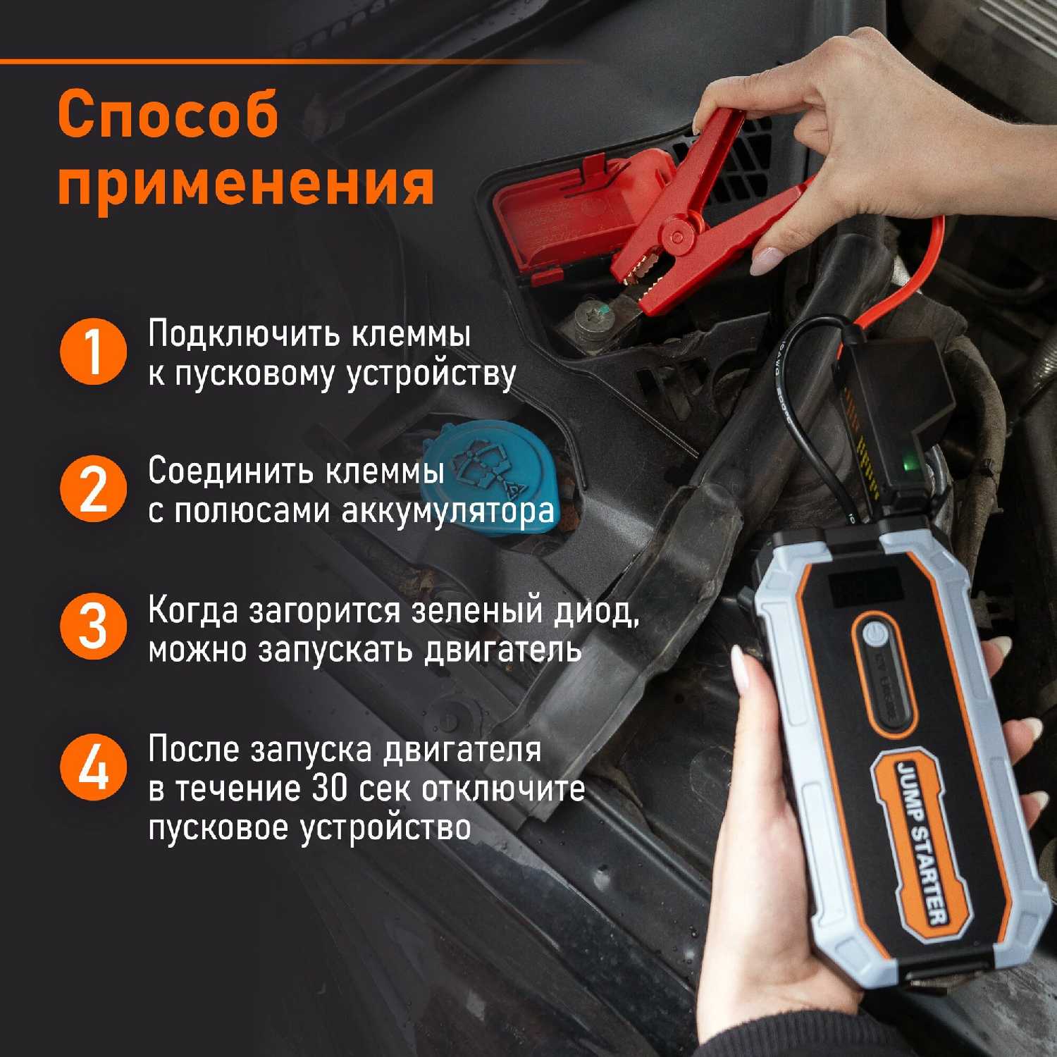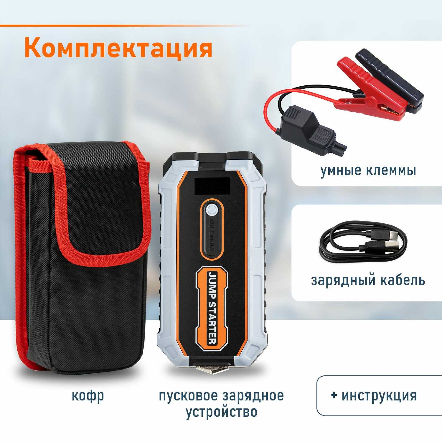 Подробная комплектация : | Пуско-зарядное устройство - 1 шт., умные клеммы - 1 шт., провод для зарядки - 1 шт., паспорт - 1 шт., кофр - 1шт. |