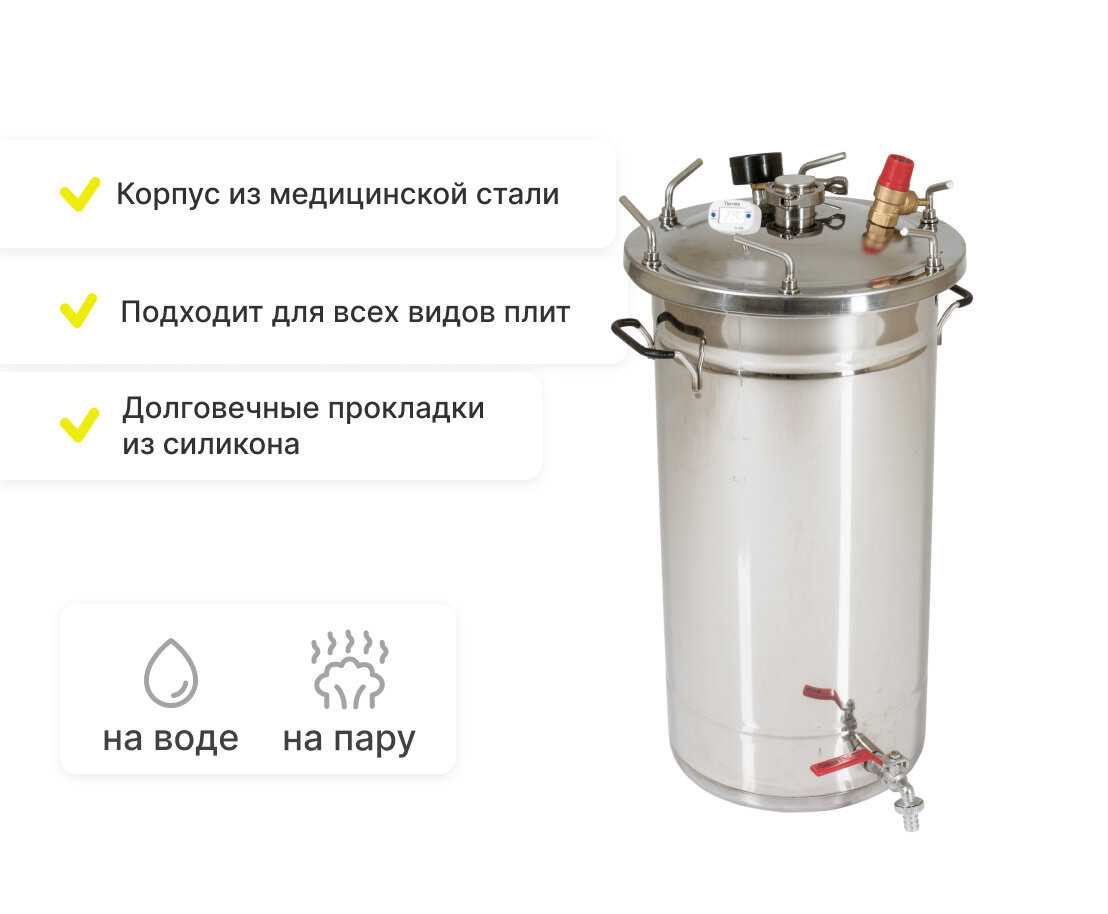 Из чего сделан автоклав - металл так металл! Ощущается надежность - сварено все грубо, но лучше надежность, чем красота. - - Существенных минусов не обнаружил, в комментарии подробнее.
