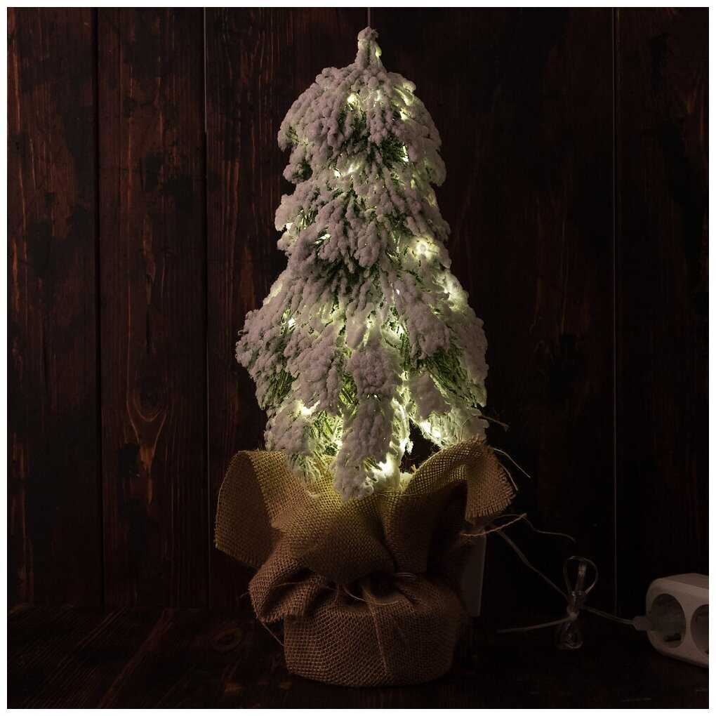 Noname Ёлка искусственная заснеженная, с ветками вниз, с тёплым белым свечением, 8 режимов, 35 см
