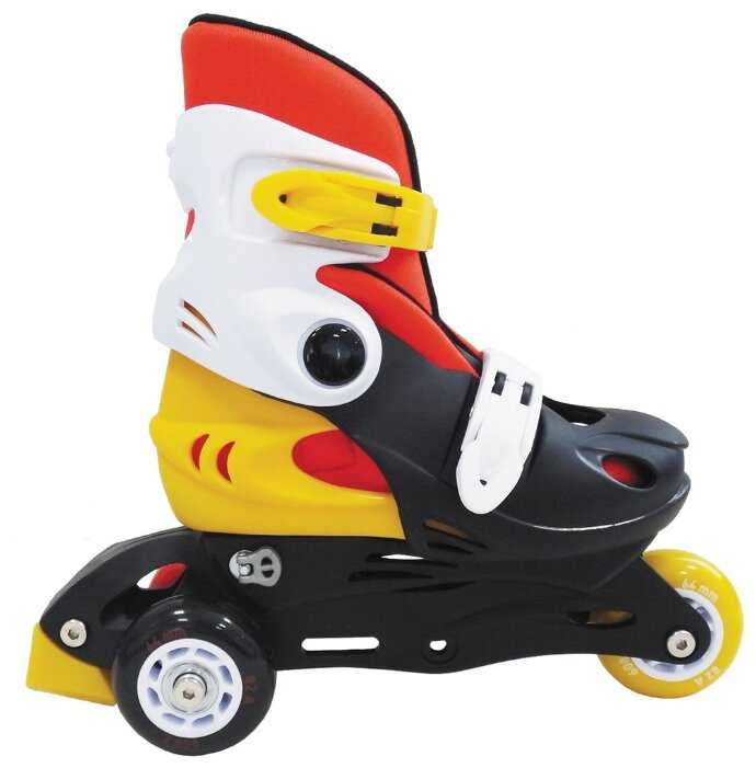 Дополнительная информация : | трехколесная система tri-skate для размеров XS и S 4 колеса для размера M, шнуровка: отсутствует, фиксация пятки: бакля, материал колес: ПВХ, материал рамы: пластик |