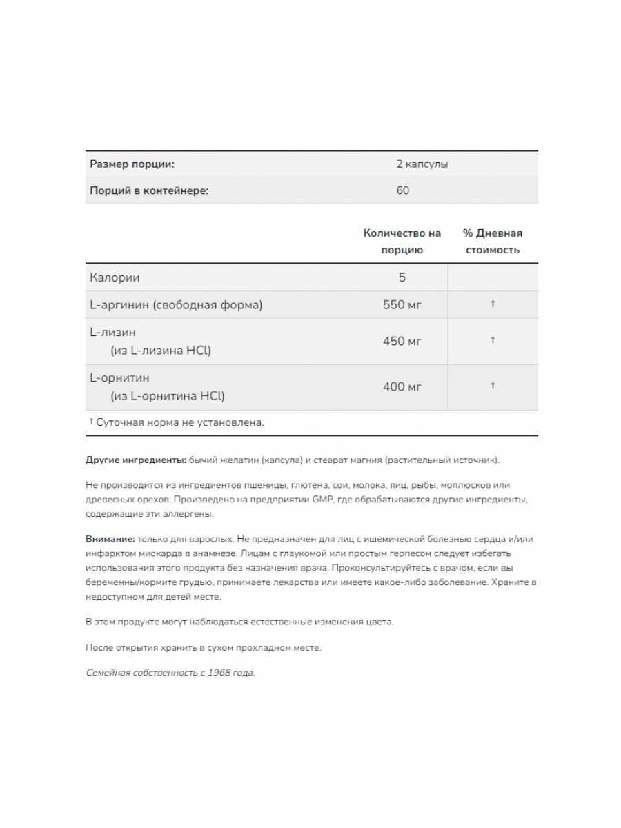 Основной ингредиент : | орнитин, аргинин, лизин |