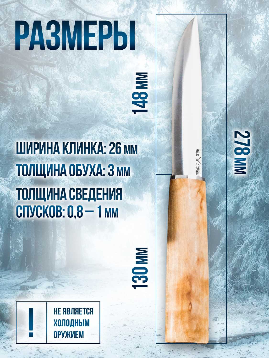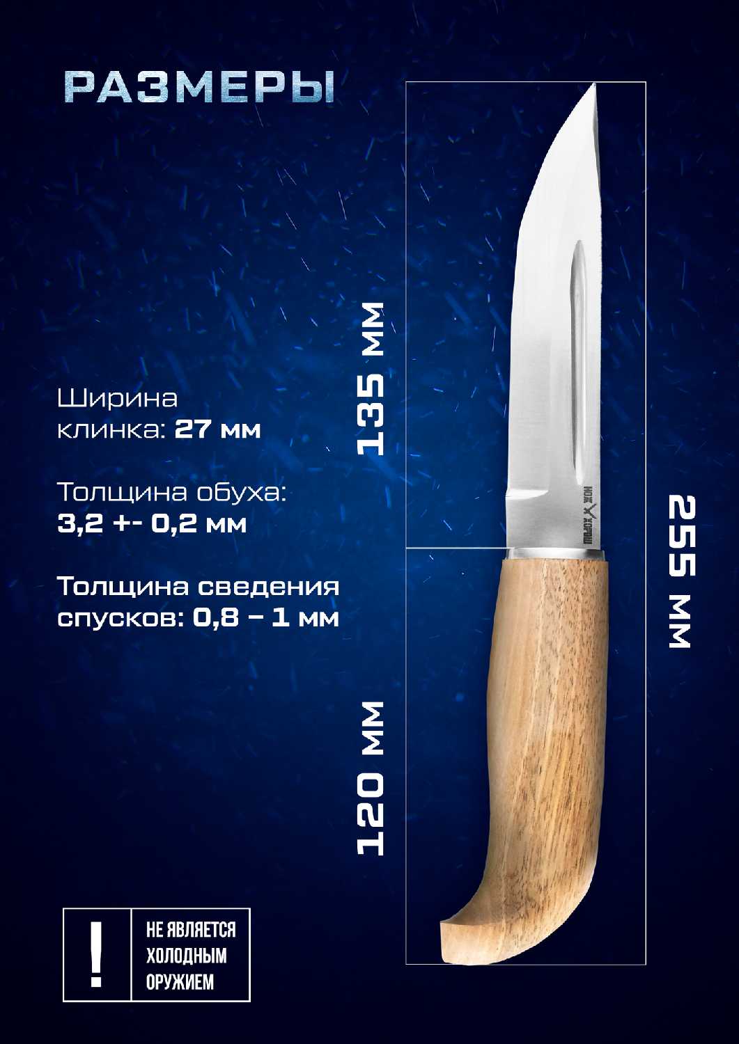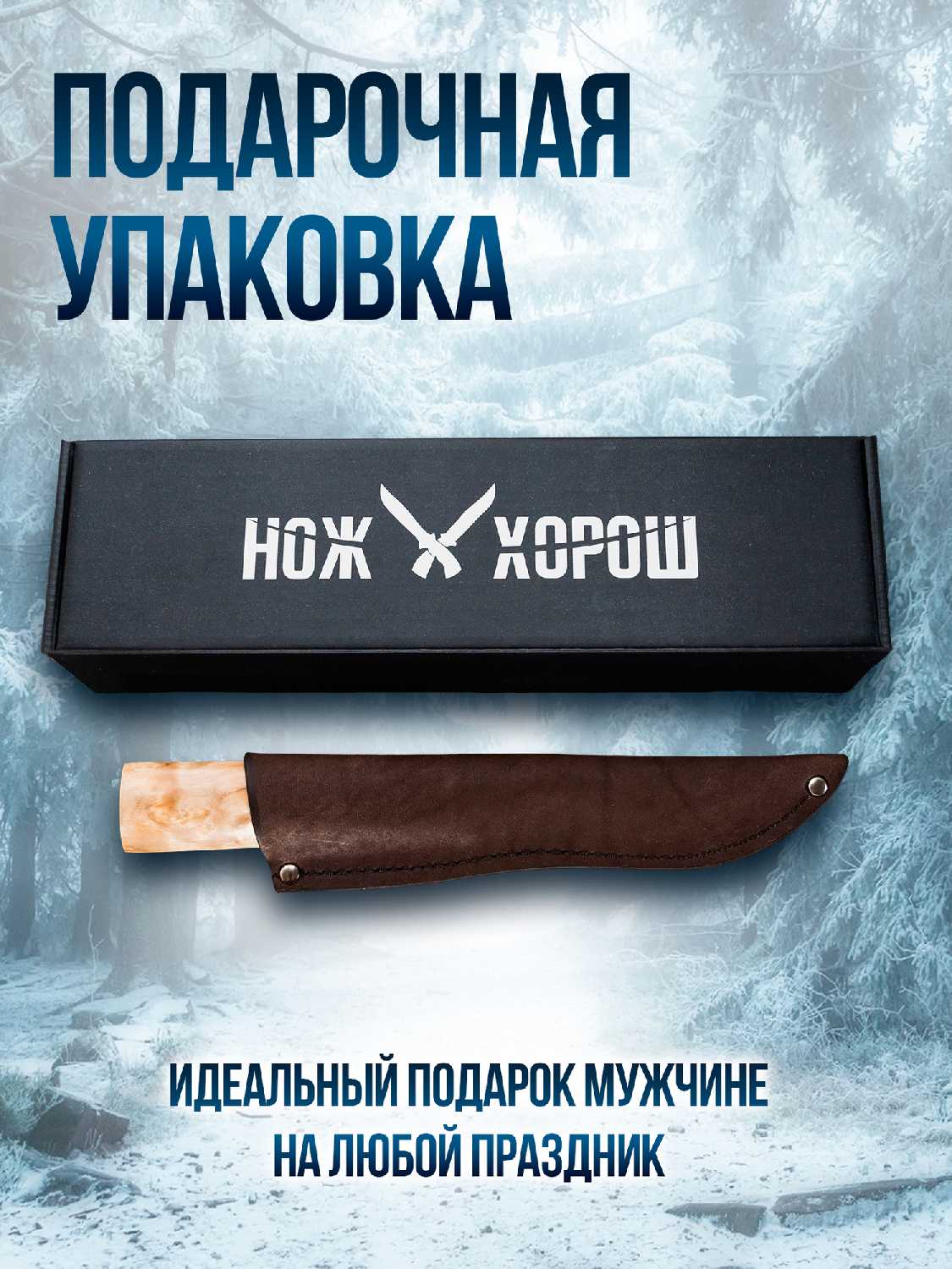 - + Всем ножам нож! Очень острый. Качественная рукоять. Шикарная комплектация. Ножны, флакончик масла, инструкция по уходу, копия сертификата. В коробке лежит декоративная стружка. Отличный подарок!