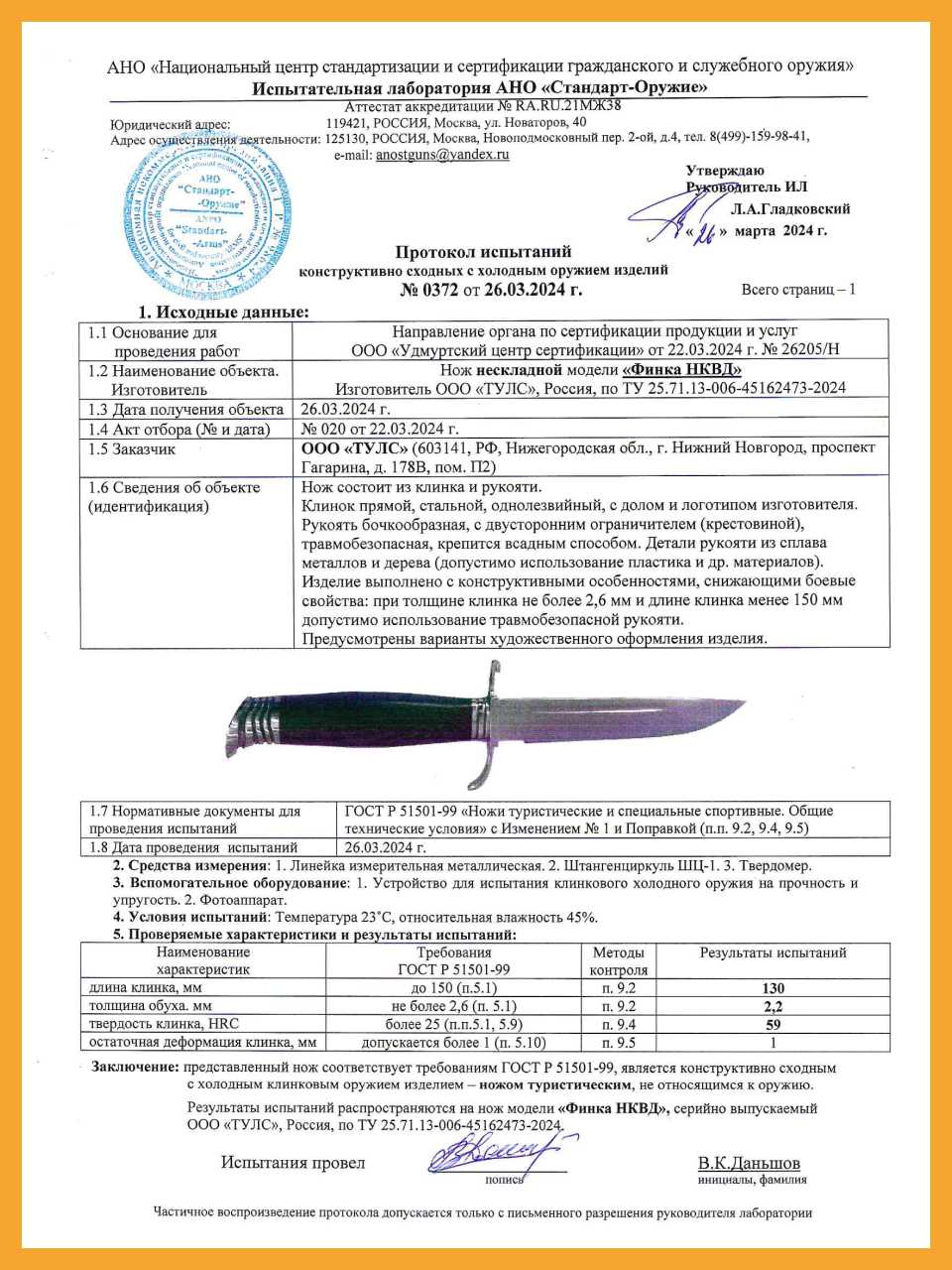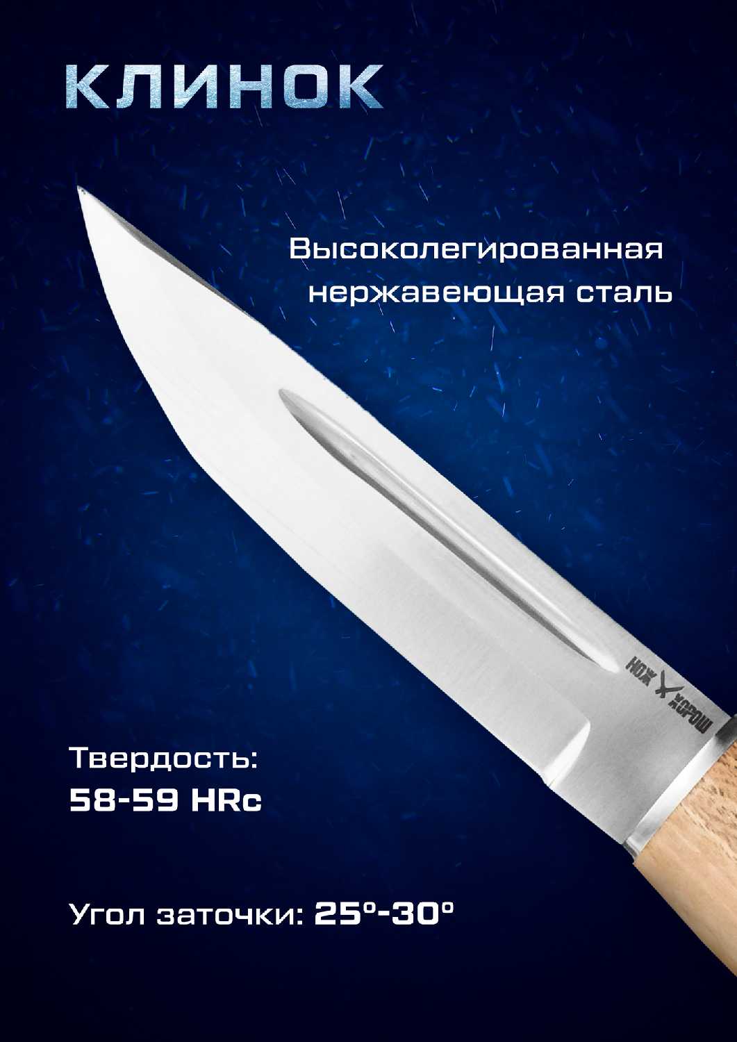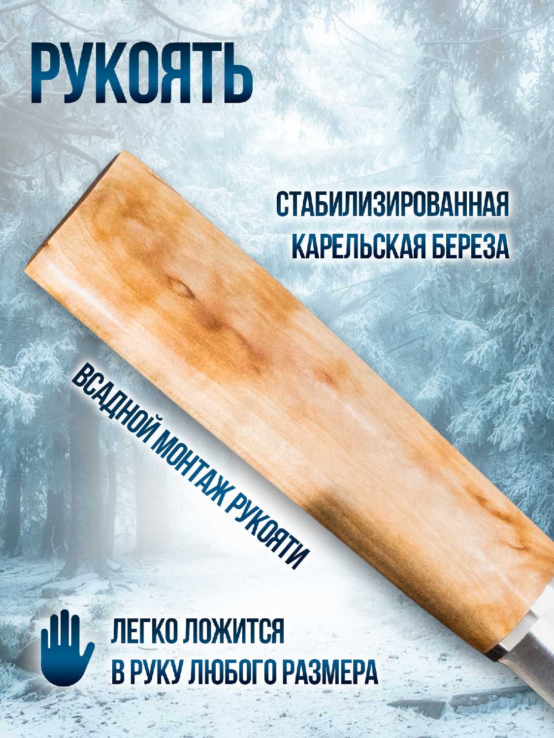 - + Всем ножам нож! Очень острый. Качественная рукоять. Шикарная комплектация. Ножны, флакончик масла, инструкция по уходу, копия сертификата. В коробке лежит декоративная стружка. Отличный подарок!