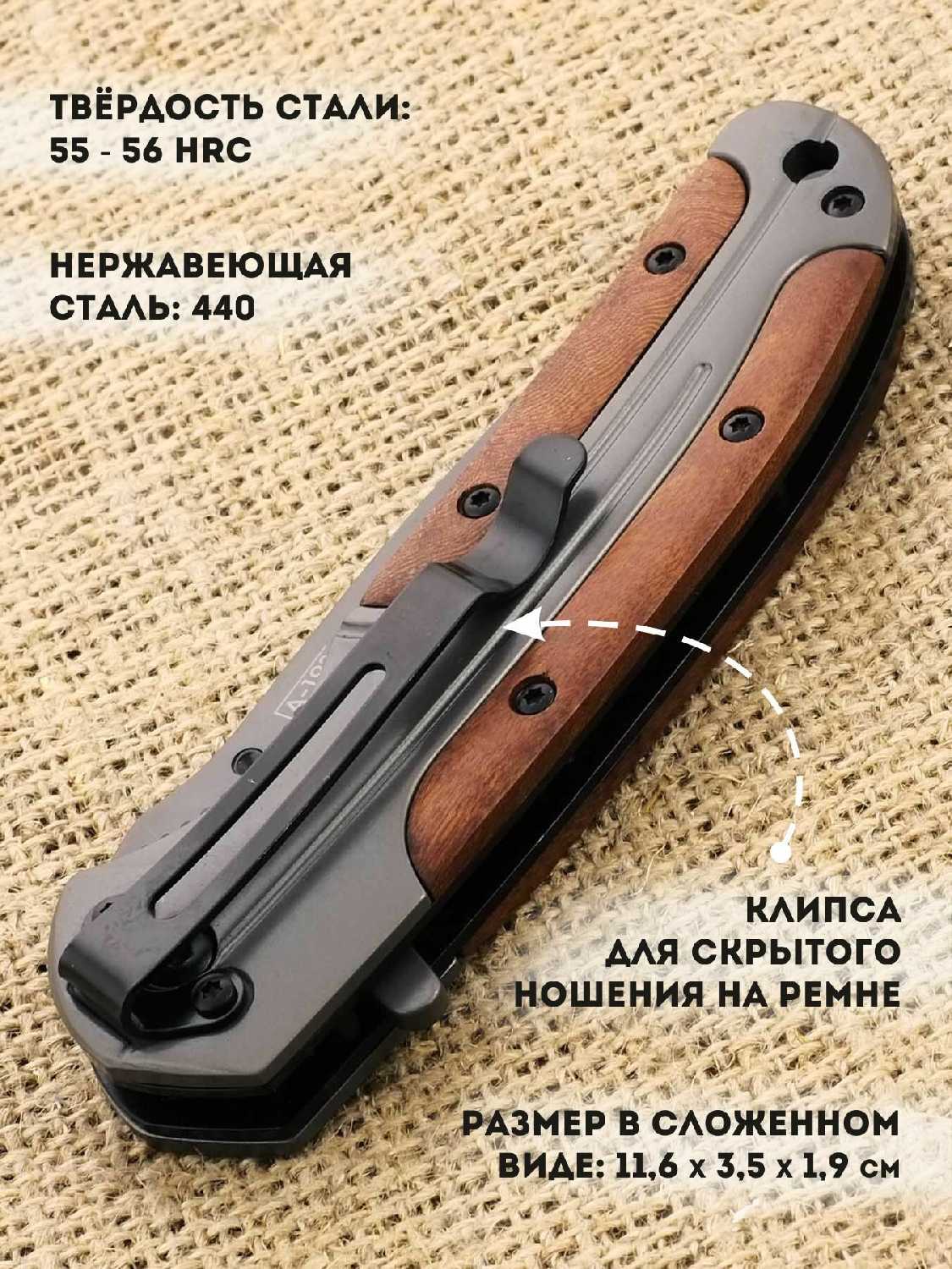 Особенности : | автоматический выброс клинка, возможность использования одной рукой, клипса для кармана |