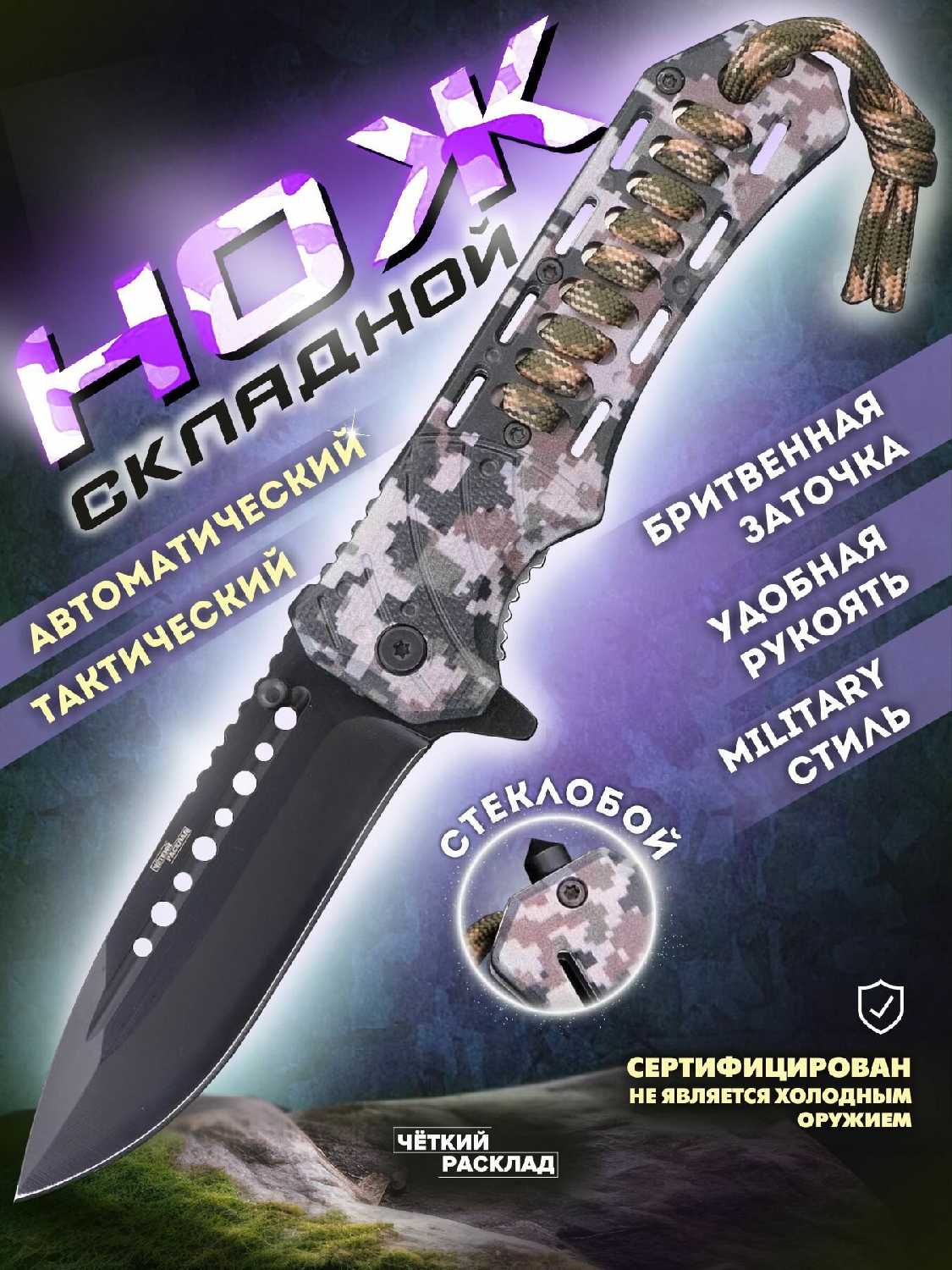 Особенности : | автоматический выброс клинка, возможность использования одной рукой, клипса для кармана |