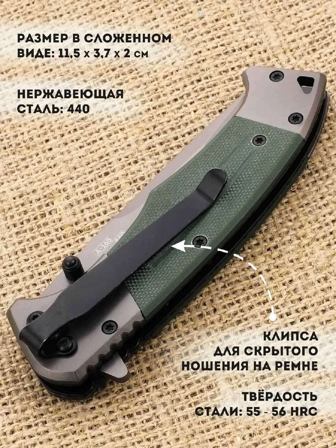 Особенности : | автоматический выброс клинка, возможность использования одной рукой, клипса для кармана |