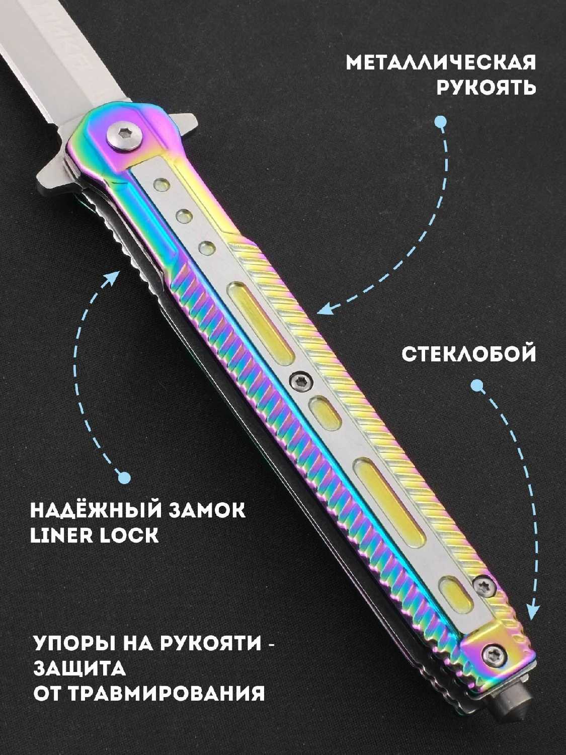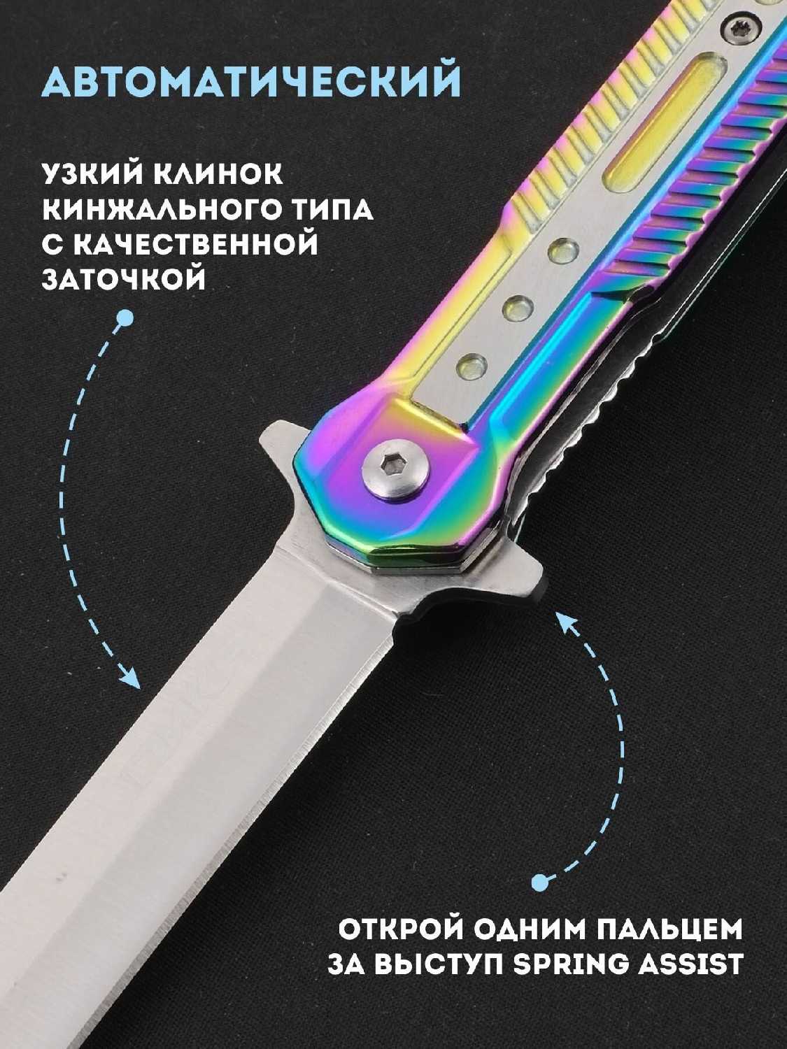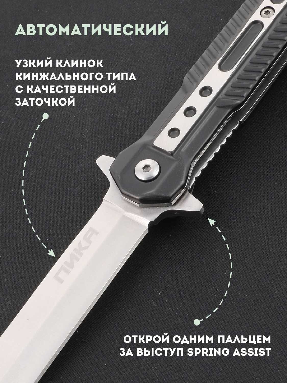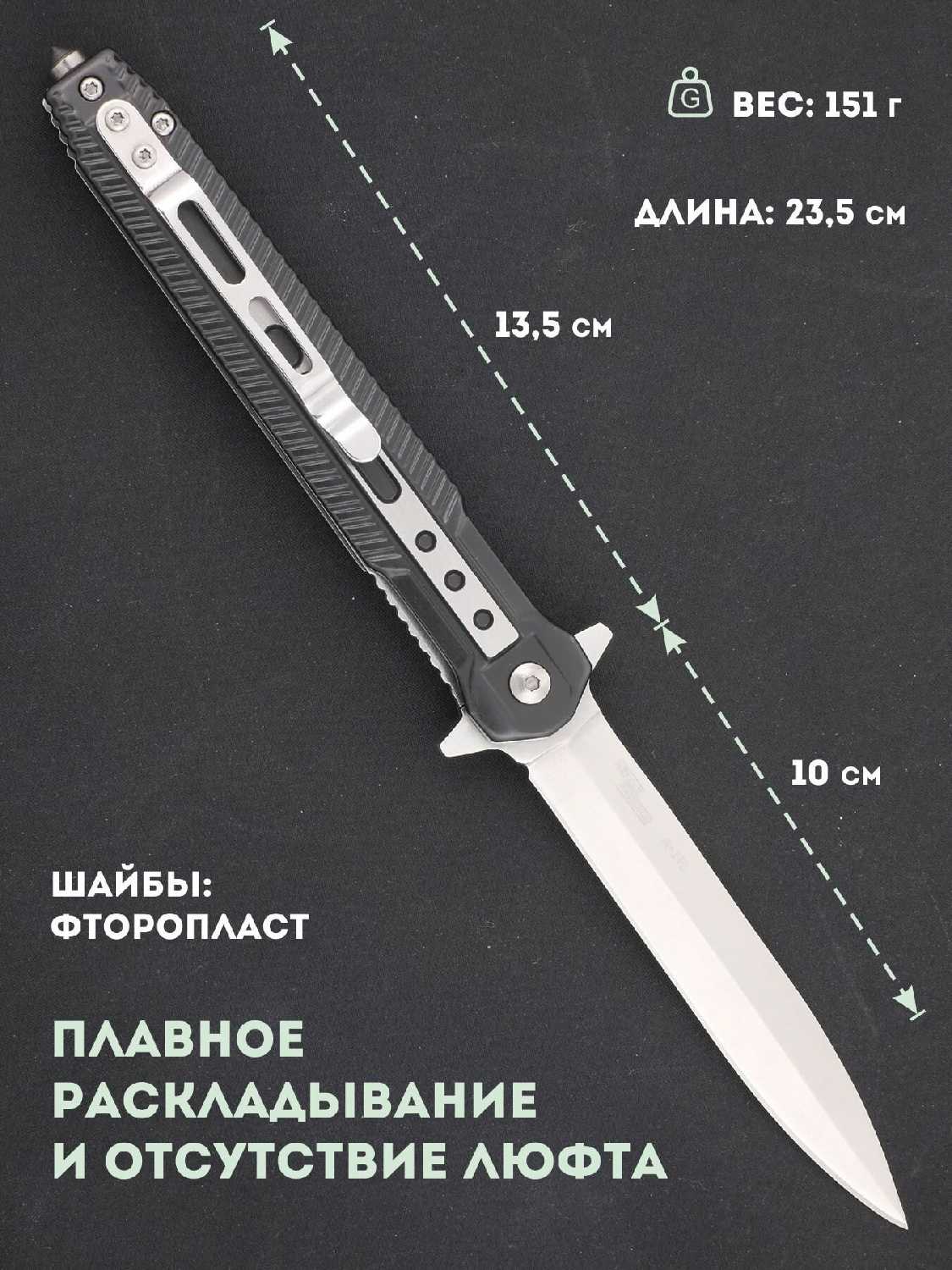 | Особенности : | автоматический выброс клинка, возможность использования одной рукой, клипса для кармана |