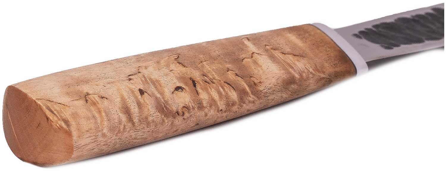 - + Удобная ручка, отличная сталь. Удобно разделывать мясо, в тоже время вырезать формы из дерева.