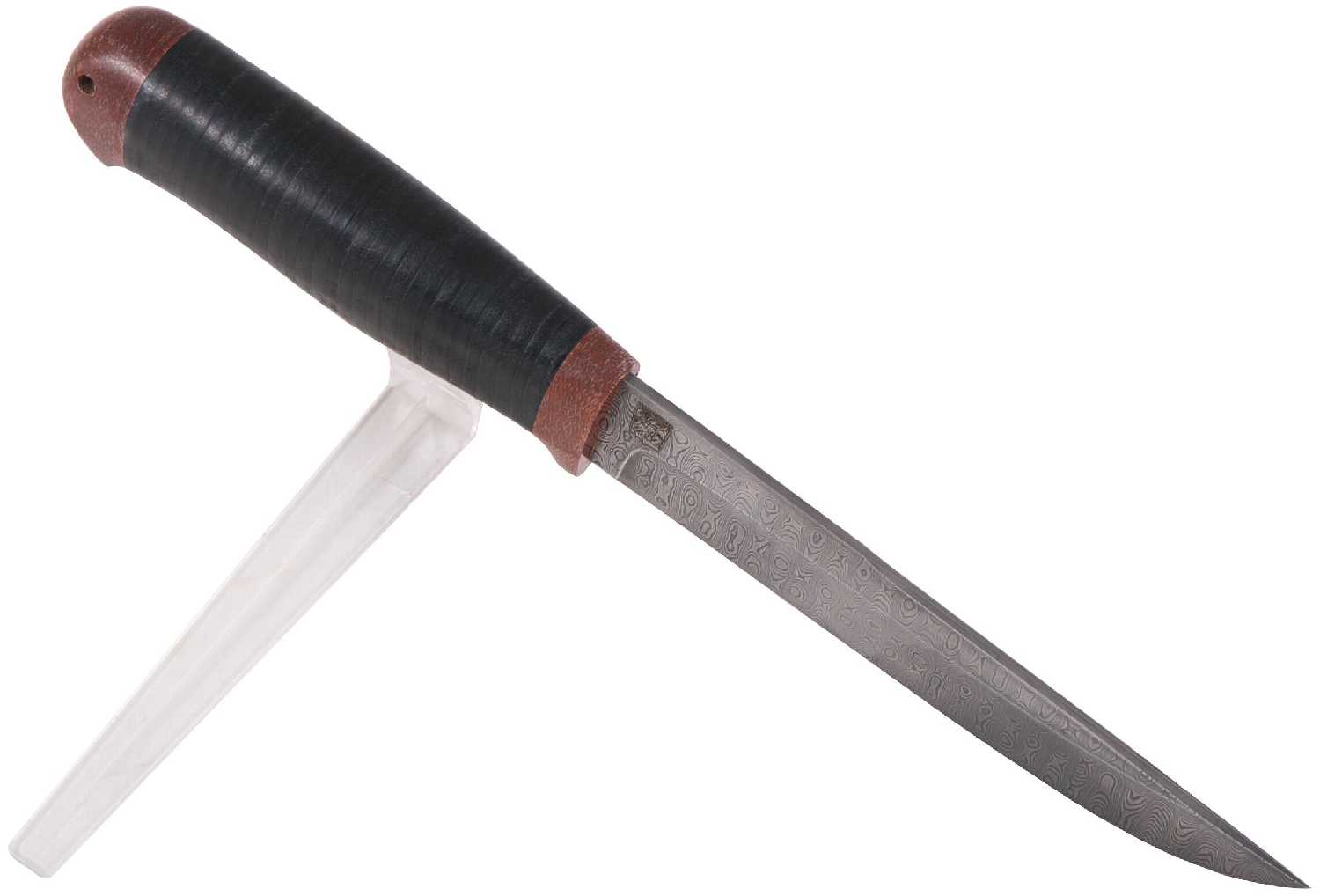 Златоустовский оружейный завод Нож для охотника и рыболова "Лиса" (нержавеющая дамасская сталь, кожа/текст