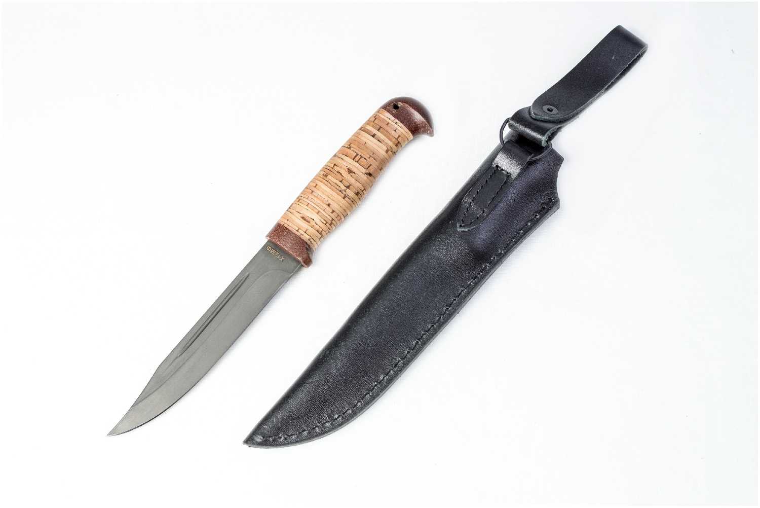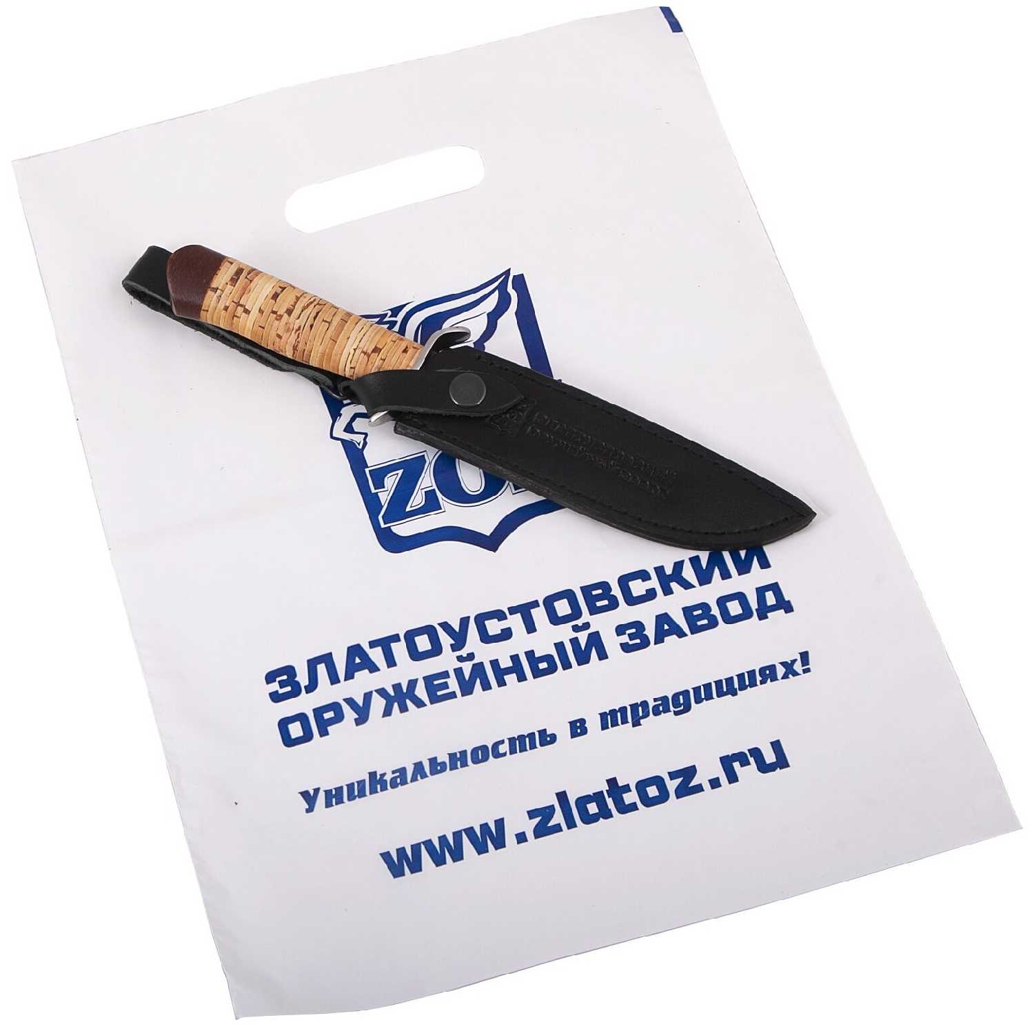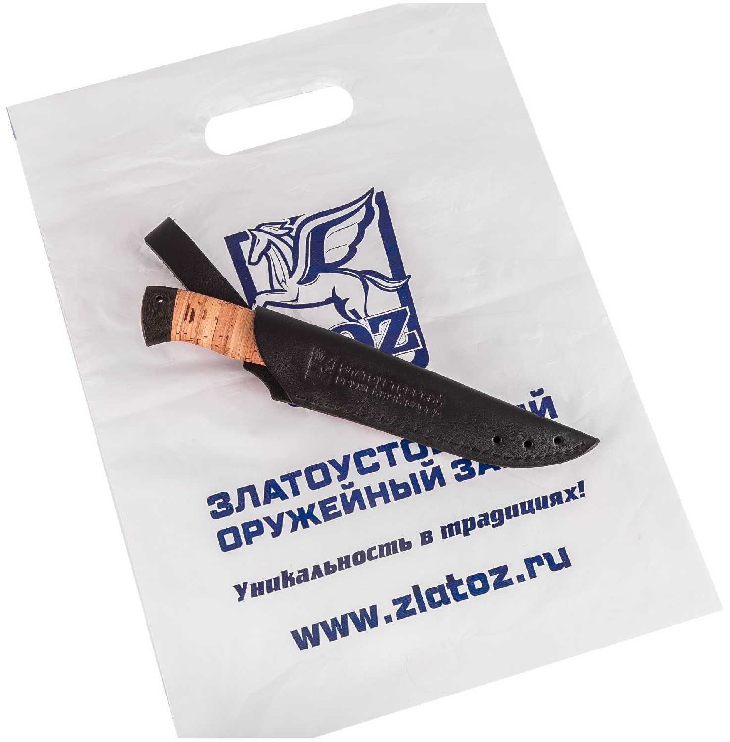 Златоустовский оружейный завод Нож "Турист" для охотника и рыболова (сталь Х12МФ, береста)
