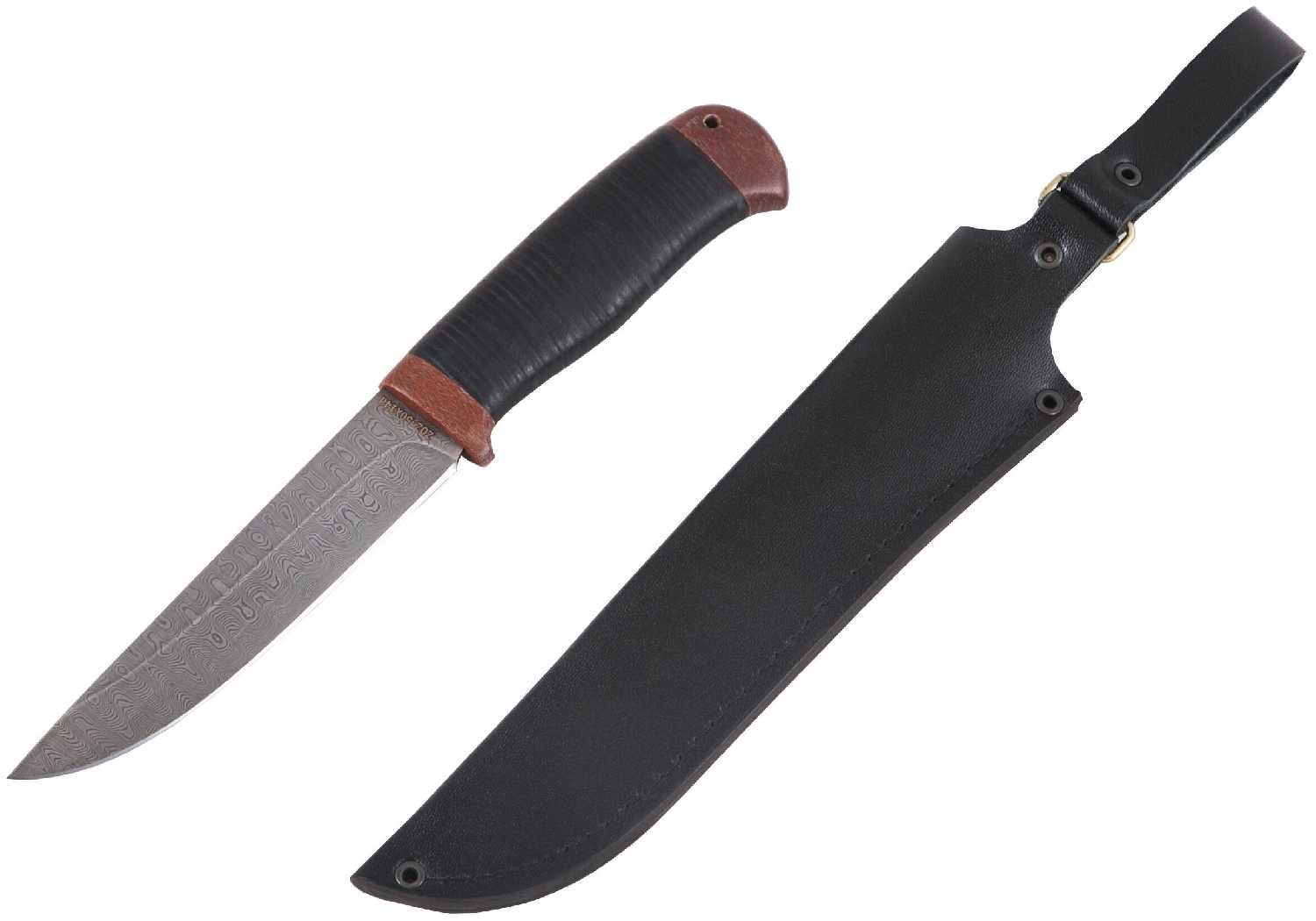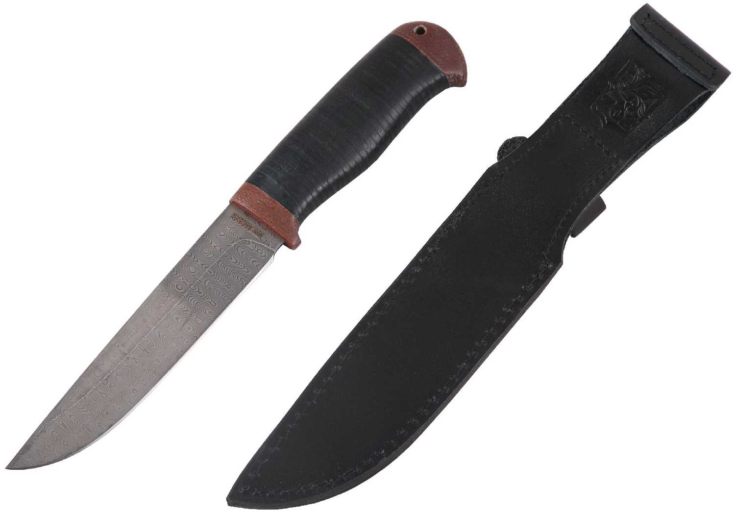 Златоустовский оружейный завод Нож "Таежный" (нержавеющая дамасская сталь, кожа/текст