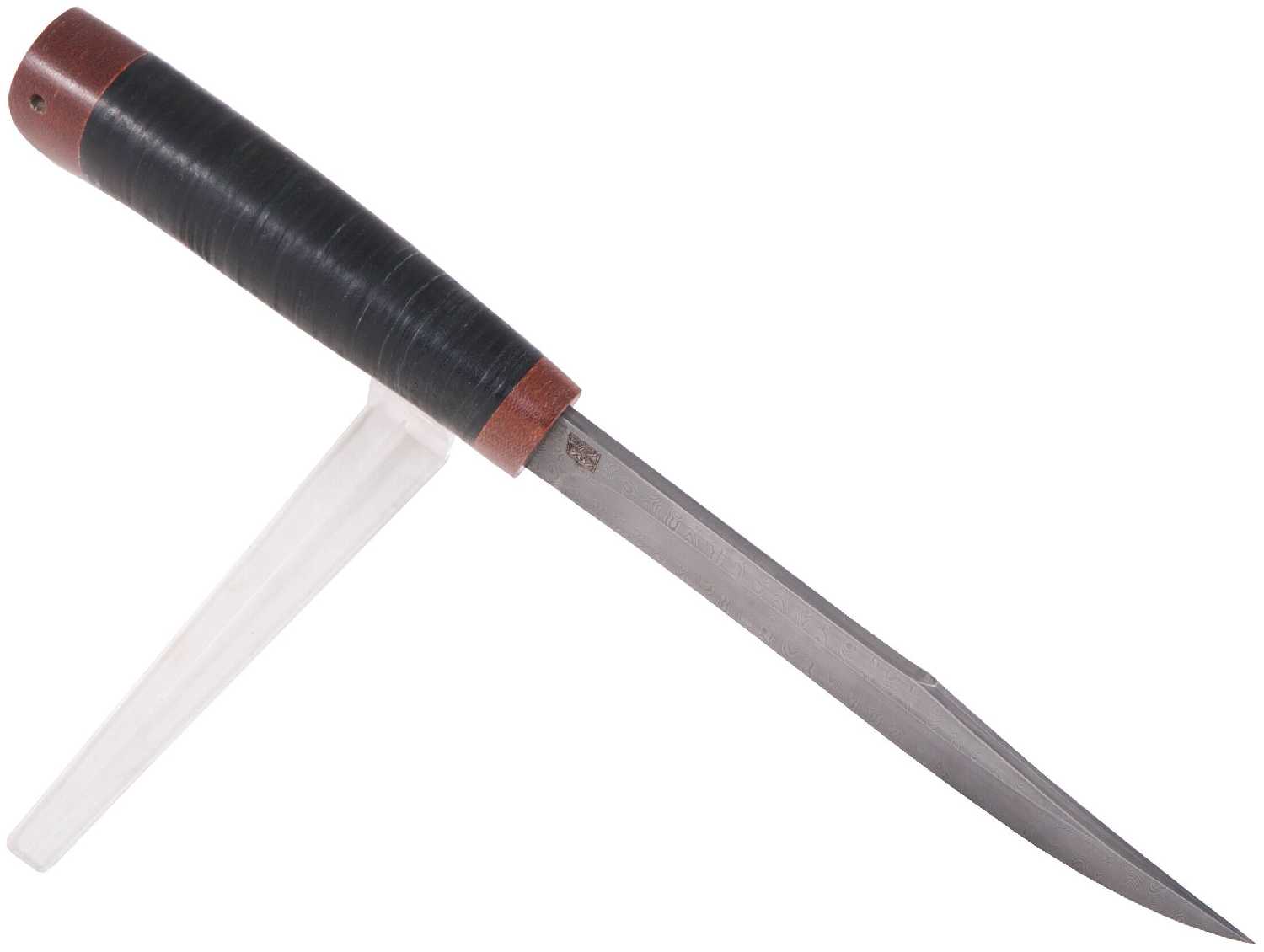 Златоустовский оружейный завод Нож для охотника и рыболова "Финка" (нержавеющая дамасская сталь, кожа/текст