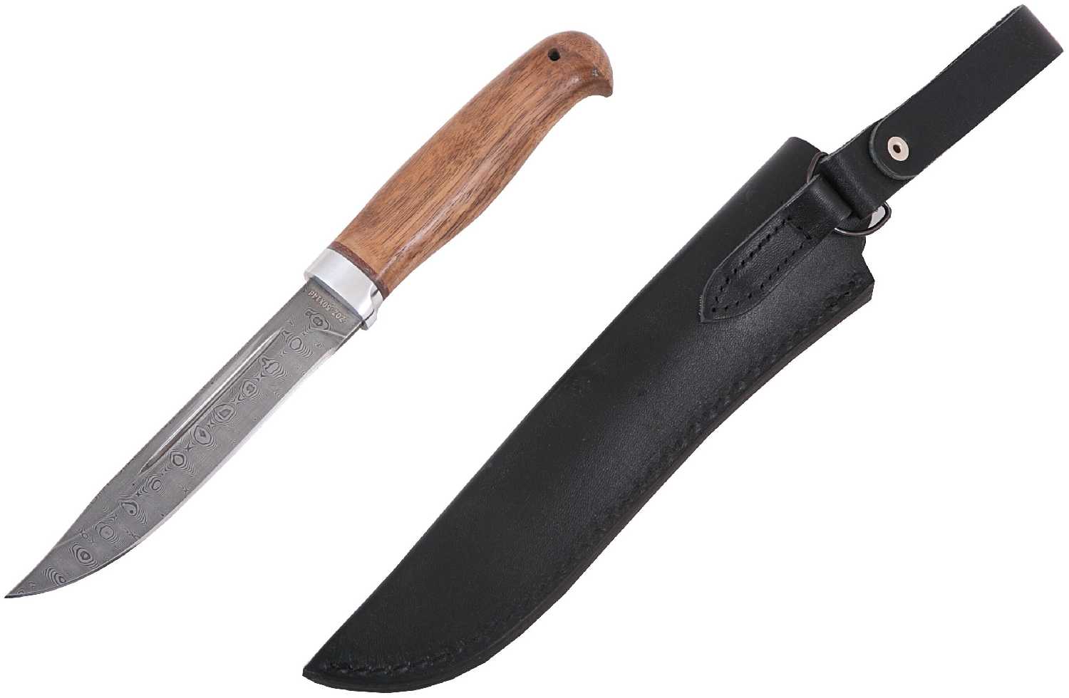 Златоустовский оружейный завод Нож ручной работы "Пустельга" (нержавеющая дамасская сталь, орех/ал