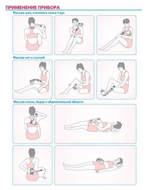 - При массаже лежа на спине прибор может сползать с плоских поверхностей (живот, грудь).