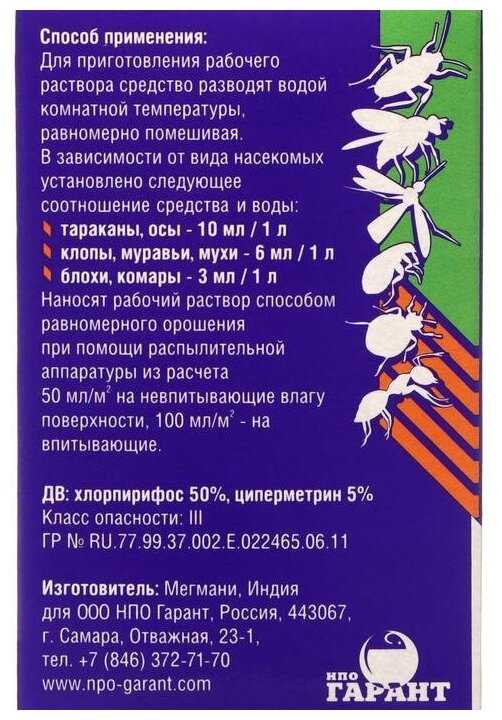 - Комплексный состав предотвращает адаптацию насекомых: даже при многократном использовании за 5 лет не отмечено снижения эффективности.