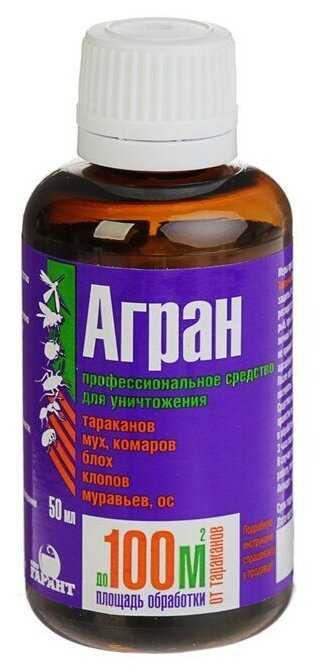 | Подробная комплектация : | Агран средство от тараканов, муравьев, клопов, комаров, мух, ос, блох, 100 мл - 1шт. |