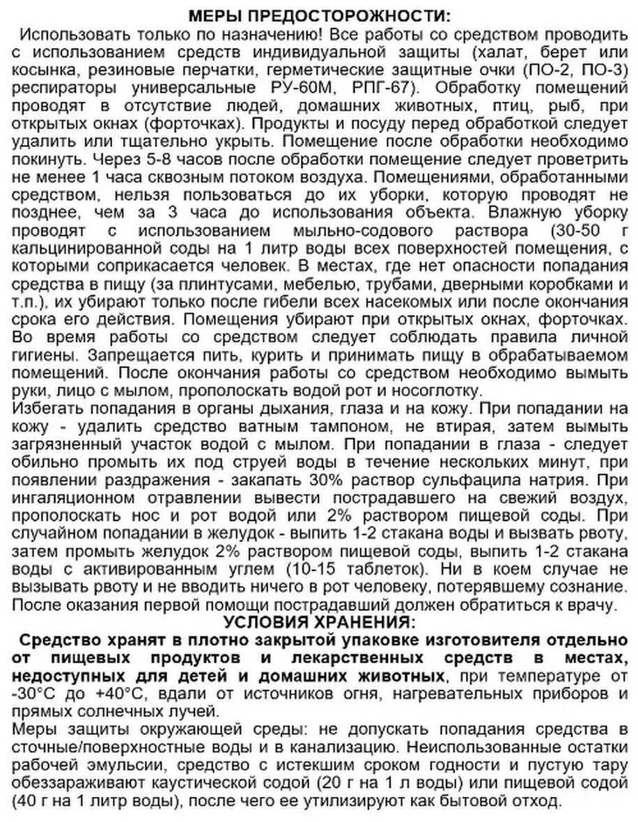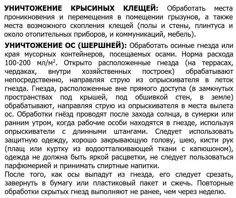 | Дополнительная информация : | обработку проводить в средствах защиты при отсутствии людей и животных, при открытых окнах |