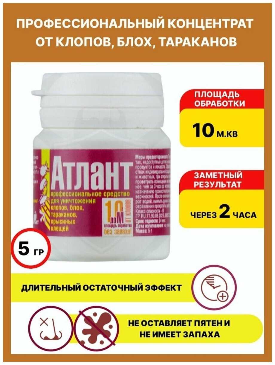 | Подробная комплектация : | Средство от насекомых Атлант 5 г банка в коробке |
