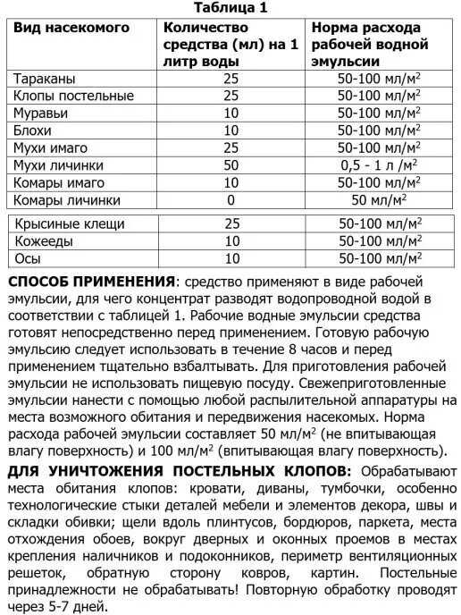 | Способ применения : | Наносить в местах скопления, миграции насекомых |