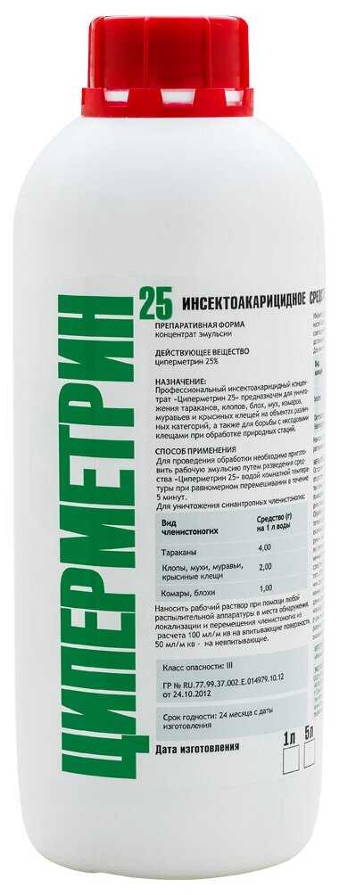 | Дополнительная информация : | концентрат Циперметрин 25 имеет высокую концентрацию действующего вещества, что позволяет использовать его в минимальных дозах |