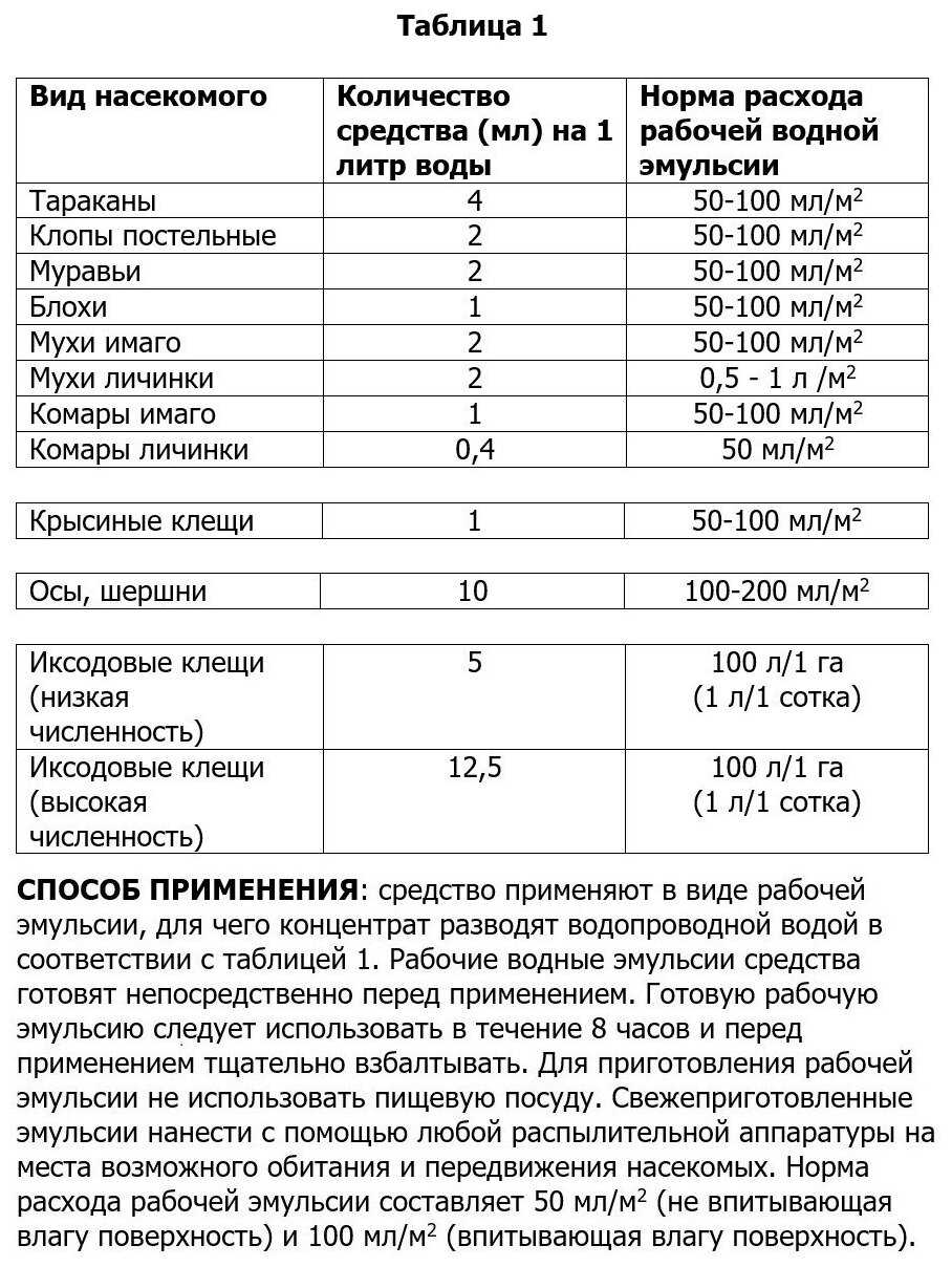 Способ применения : | Для проведения дезобработки необходимо приготовить рабочий раствор, добавляя средство «ЦИПЕРМЕТРИН 25» в воду комнатной температуры. Рабочий раствор наносят способом орошения при помощи распылительной аппаратуры 50мл раствора на 1 м2 для невпитывающих влагу поверхностей, 100 мл раствора на 1 м2 . Территории, часто посещаемые людьми (дорожки, газоны, детские площадки и т.д.) обрабатывают за 3-5 дней до посещения людьми при благоприятном метеопрогнозе на 3 дня. Средство обладает острой инсектоакарицидной активностью в течение 24-48 часов и остаточным действием в течение 3-5 недель. При обработке открытых территорий обычно достаточно 1-2 обработок за сезон. |