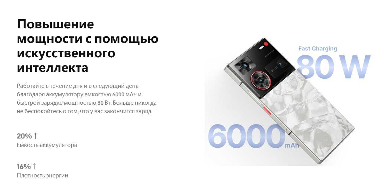 - Аккумулятор 6000 мАч с быстрой зарядкой 80 Вт:
