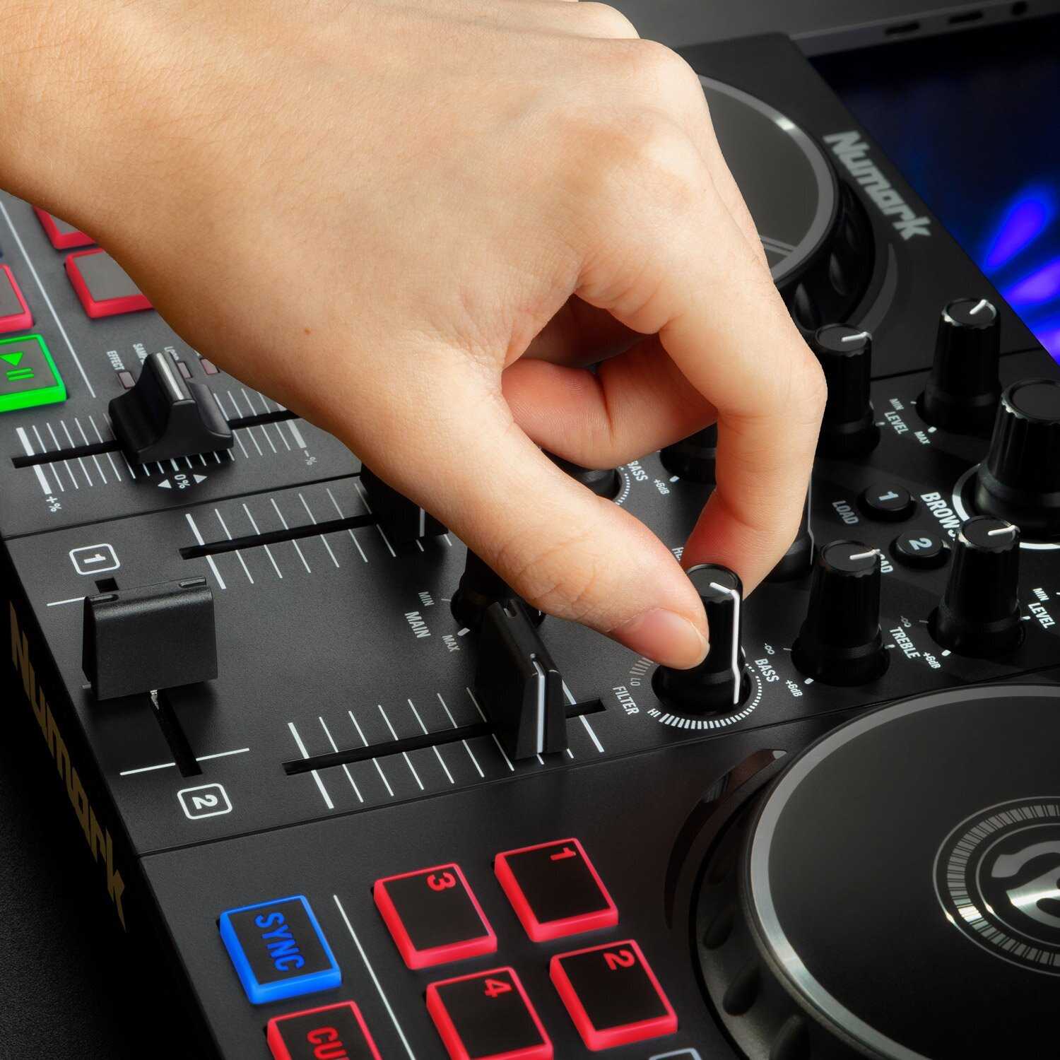Высокие частоты на фильтре есть, низкие есть, а средние нет. Зато есть гейн и есть еще фейдер громкости, и еще х-фэйдер. Для новичка это три разные ручки почти с одной и той же функцией
